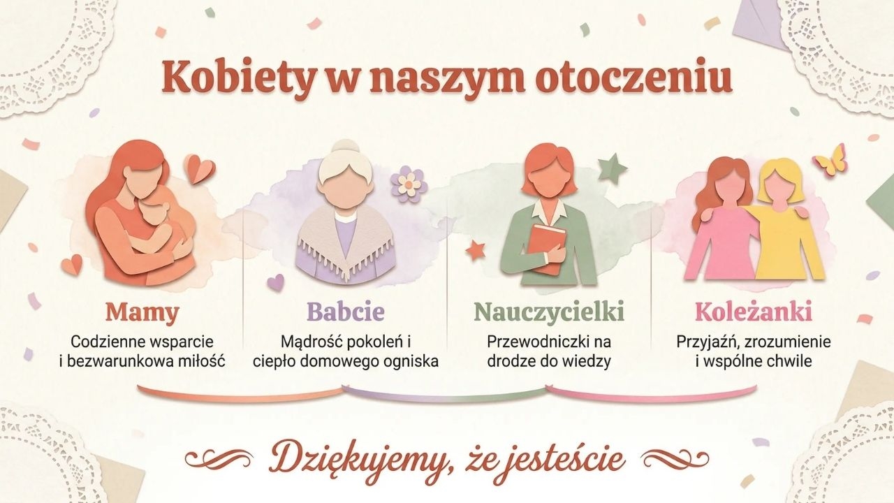 Zestaw pozwala stworzyć estetyczną, spójną i uroczystą gazetkę, która podkreśla znaczenie święta oraz promuje takie wartości jak szacunek, życzliwość, wdzięczność i docenianie roli kobiet. Materiał rozwija u uczniów wrażliwość społeczną, postawy prospołeczne, estetykę wykonania oraz umiejętność uczestniczenia w obchodach ważnych wydarzeń szkolnych.