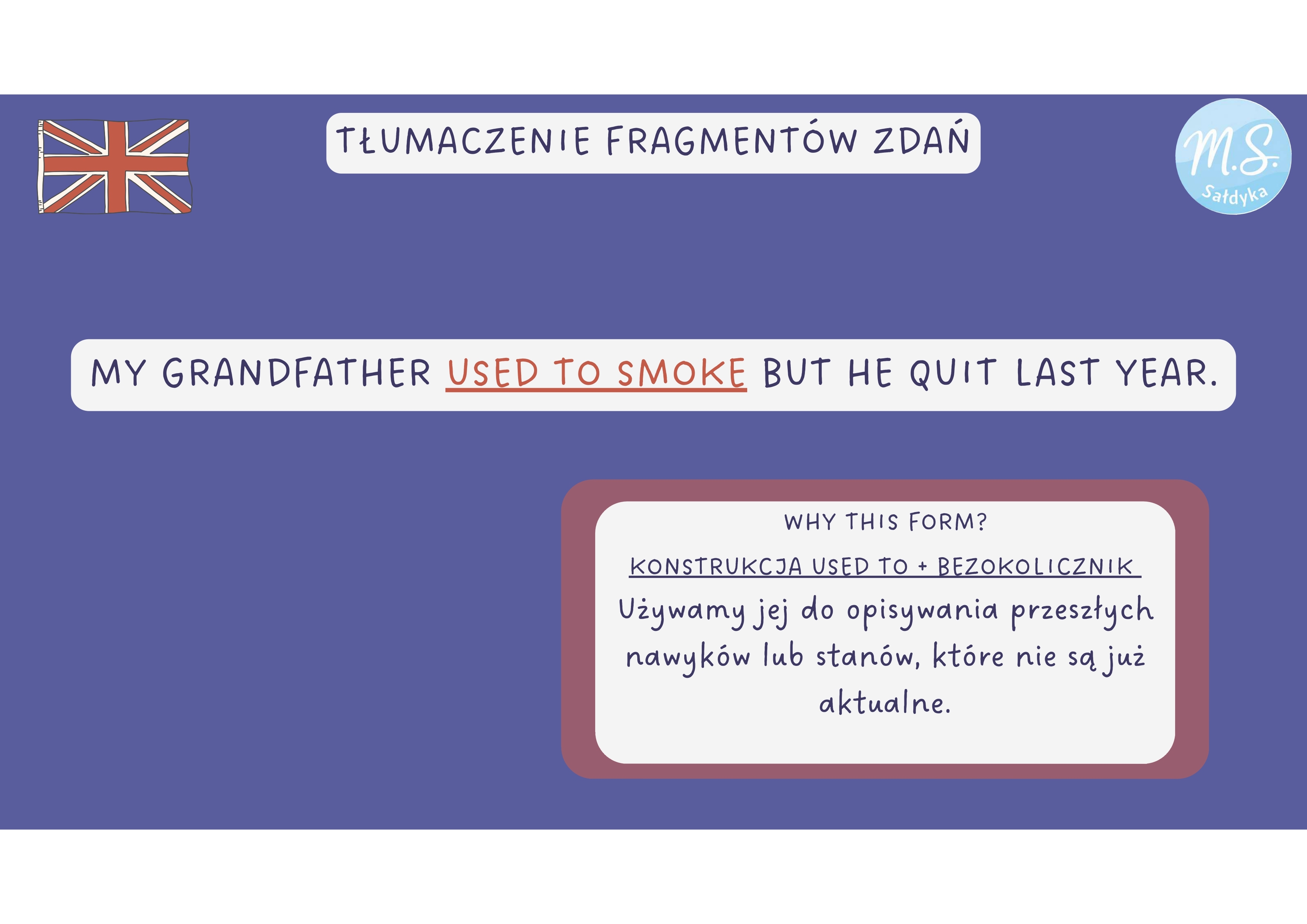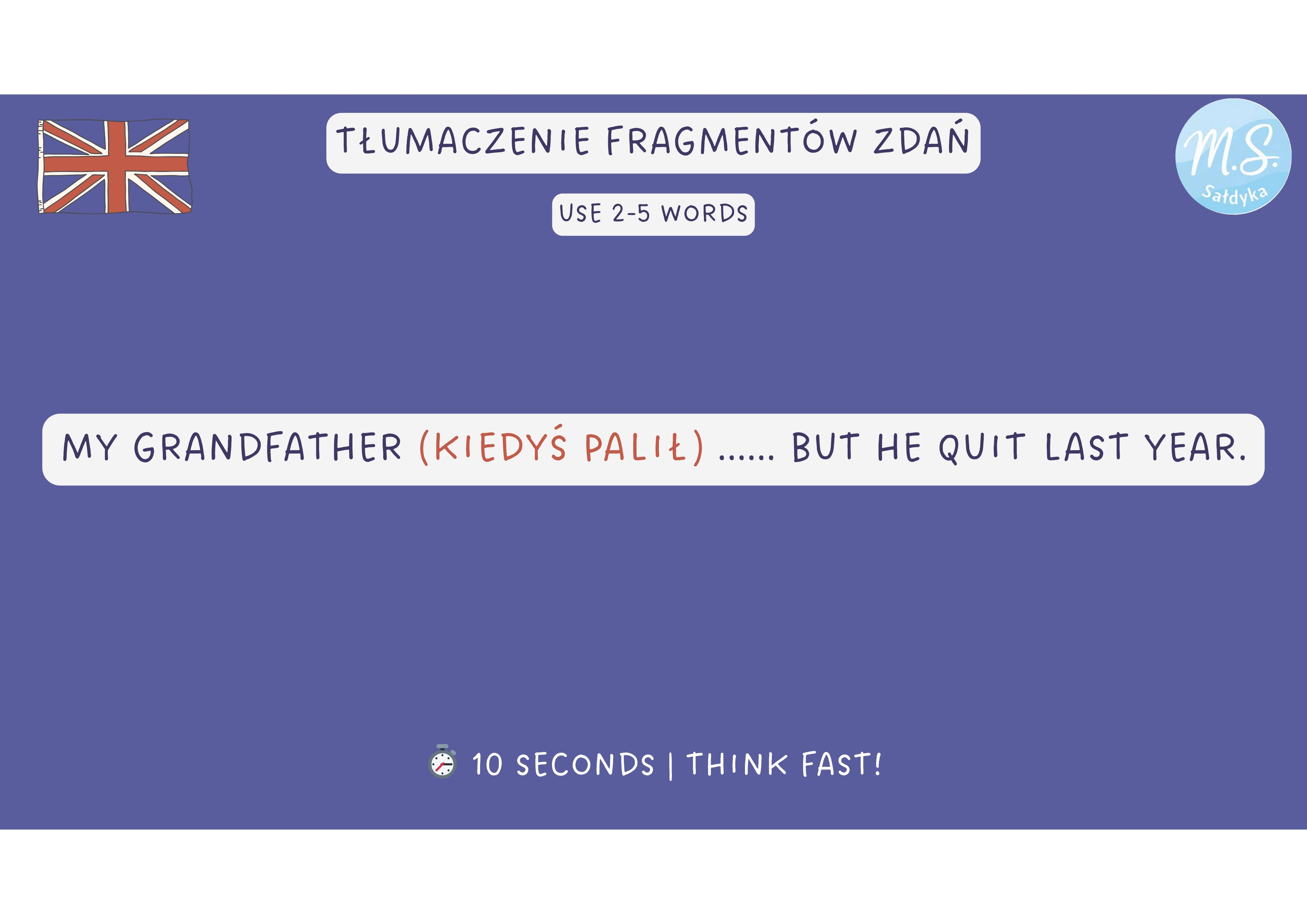 - Prezentacja (200 slajdów PDF): 100 zdań na TŁUMACZENIE FRAGMENTÓW + 100 slajdów z kluczem i błyskawicznym wyjaśnieniem zasady.