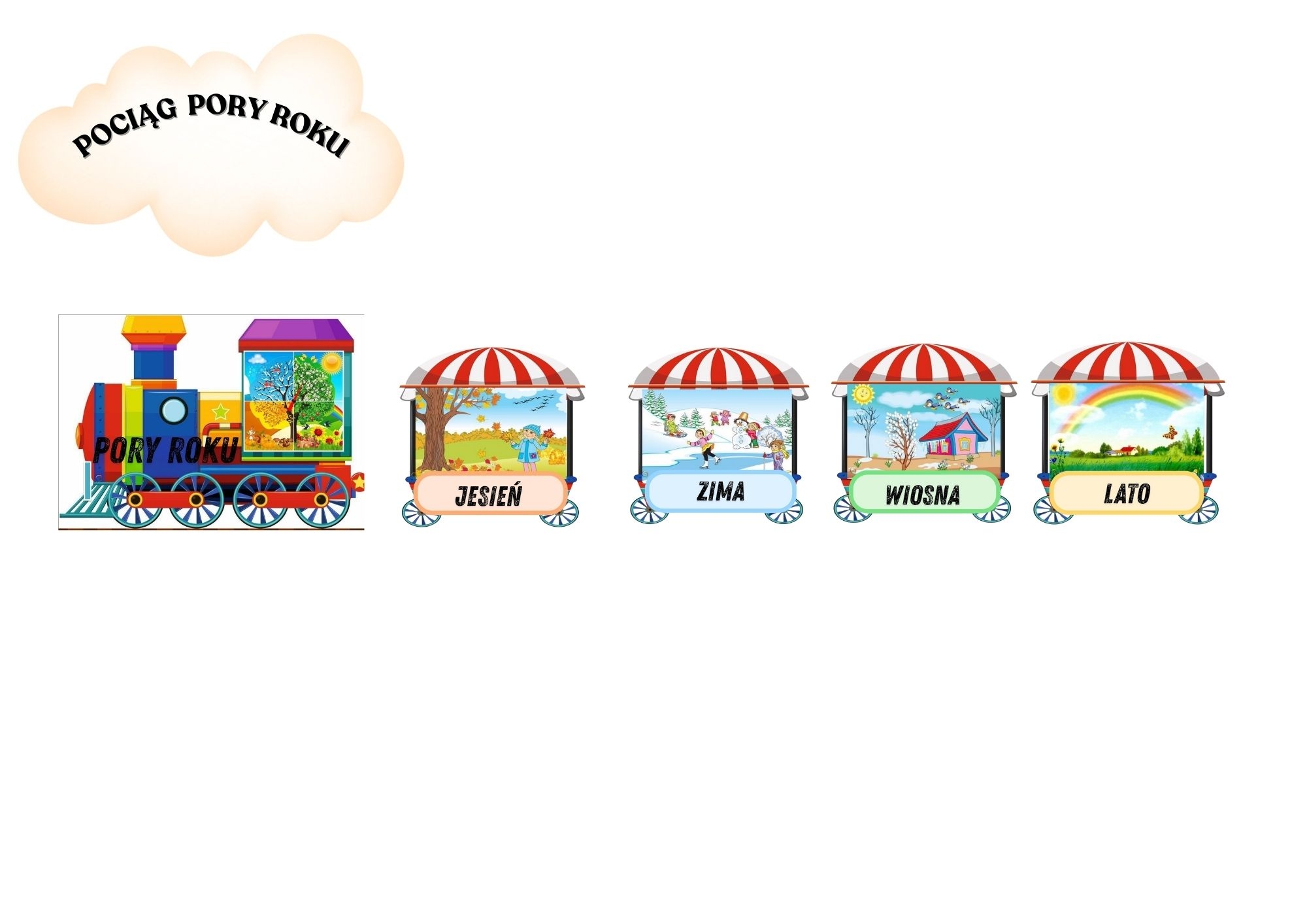 ✅ Pociąg pór roku + plansze z porami roku i miesiącami