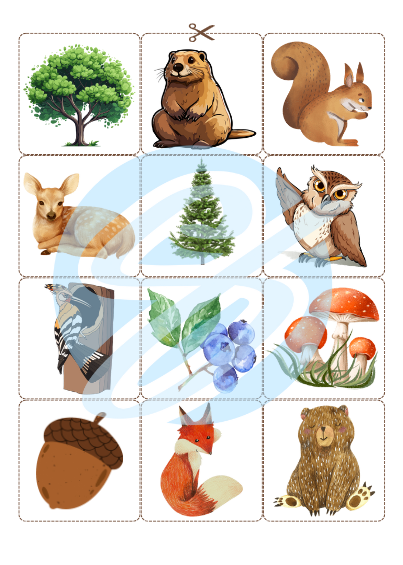 Pakiet zawiera 12 obrazków z motywem lasu.
