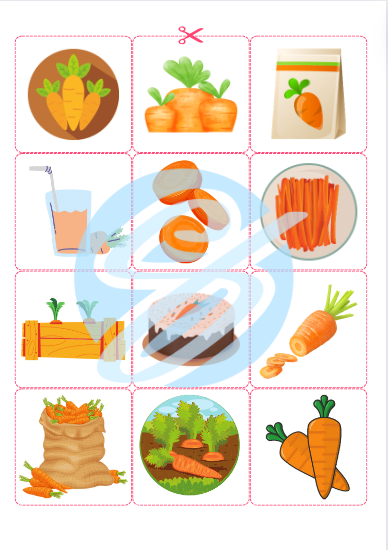 Zestaw zawiera 12 obrazków z motywem marchewki.