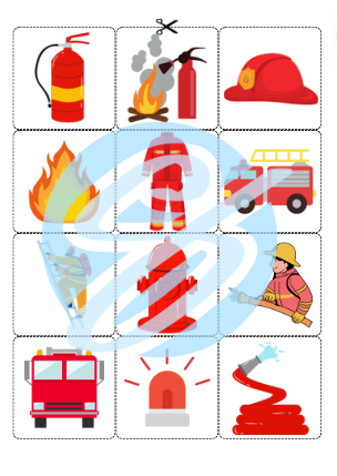 Zestaw zawiera 12 obrazków z motywami strażackimi.