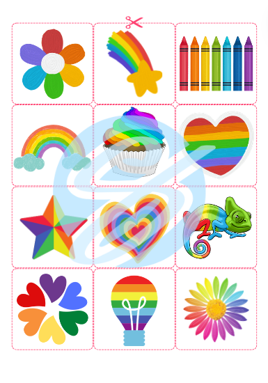 Zestaw zawiera 12 obrazków z motywem tęczy.