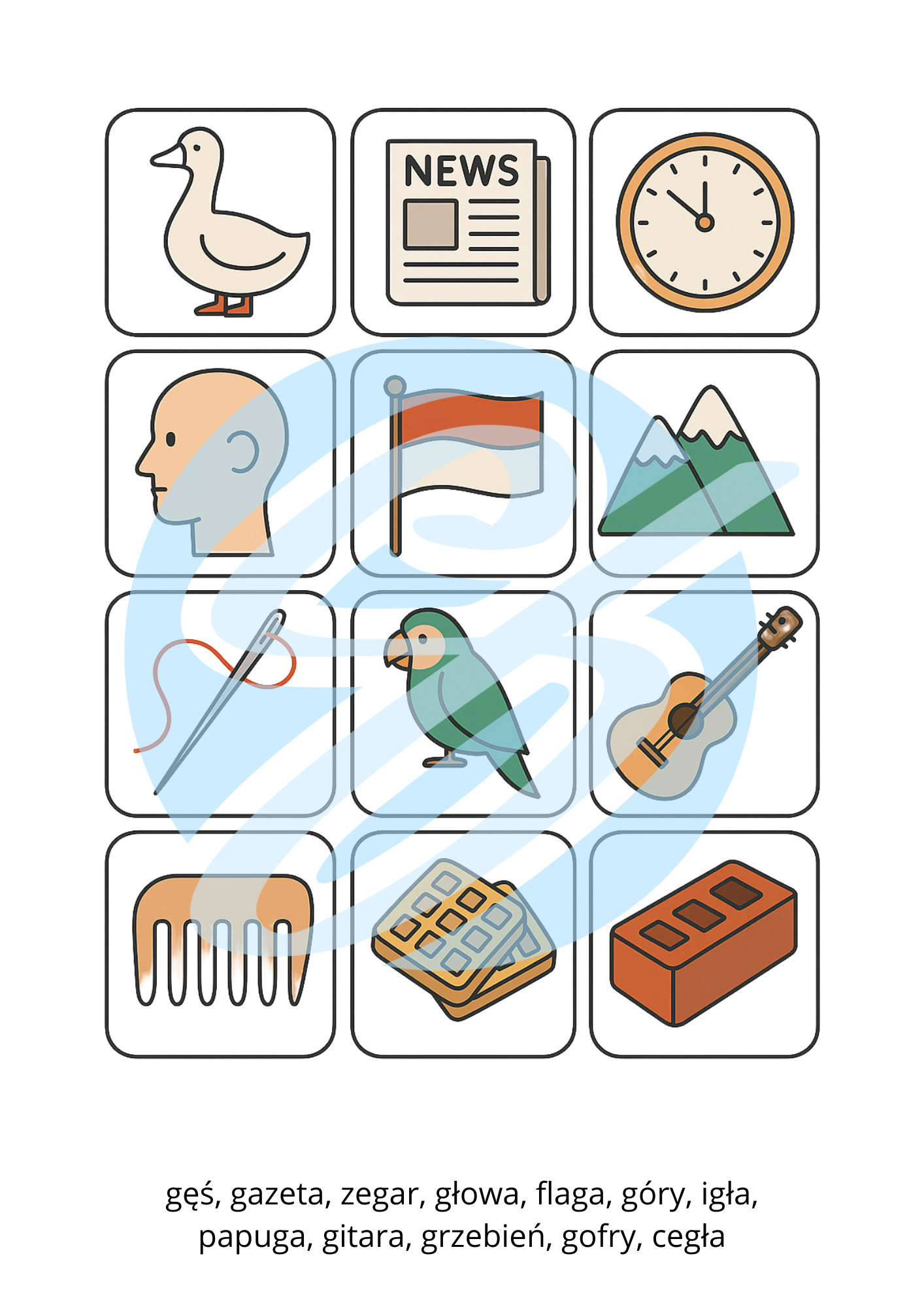 Memory – Utrwalenie głoski „G” to kolorowa gra logopedyczna stworzona z myślą o pracy z małymi dziećmi, które są na etapie utrwalania prawidłowej artykulacji głoski „G”. Zestaw składa się z atrakcyjnych ilustracji przedstawiających przedmioty i postaci, w których nazwach występuje ćwiczona głoska.