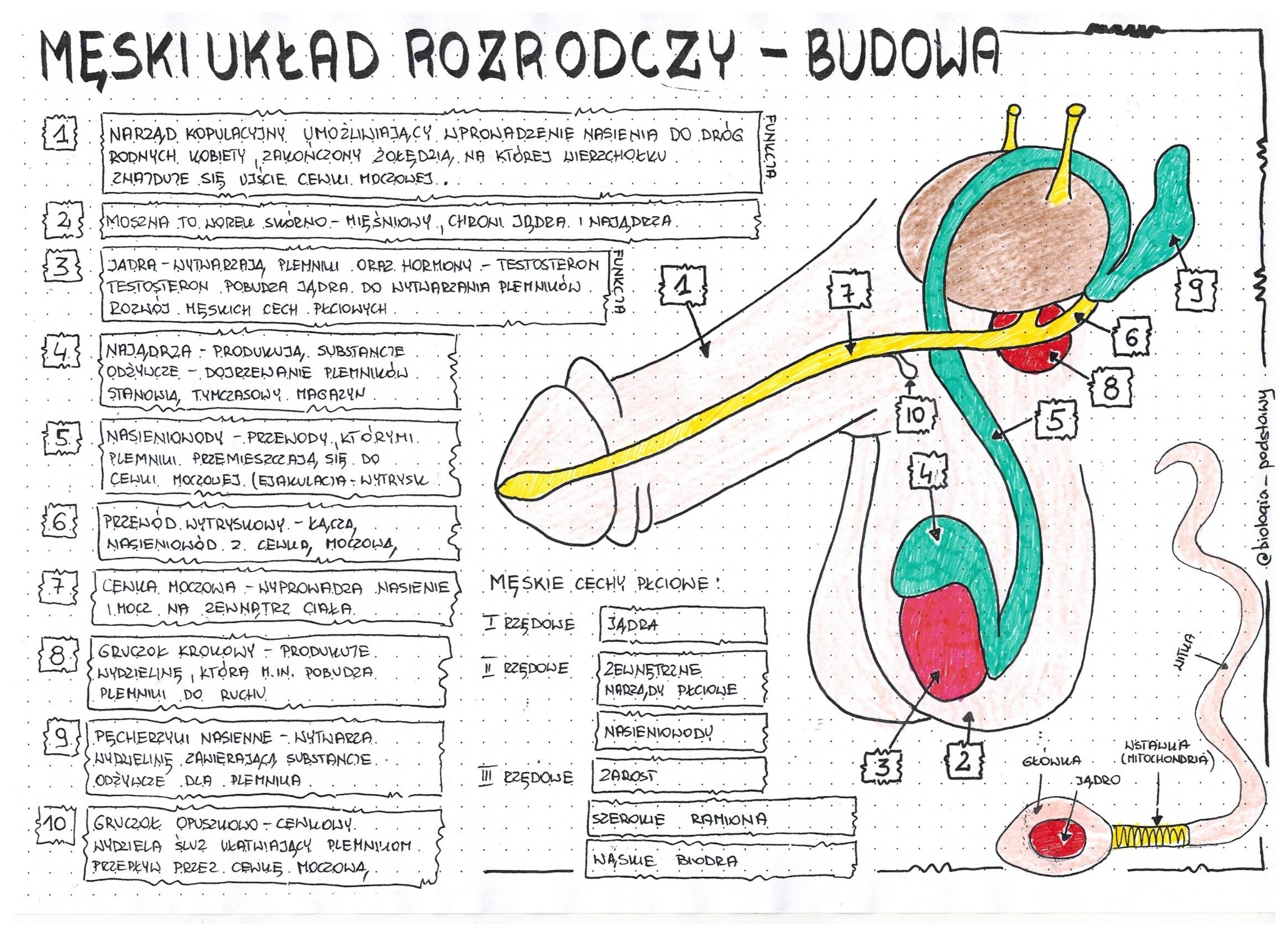 Męski układ rozrodczy - klasa 7– sketchnotka jako gotowa notatka z lekcji w formie kolorowej