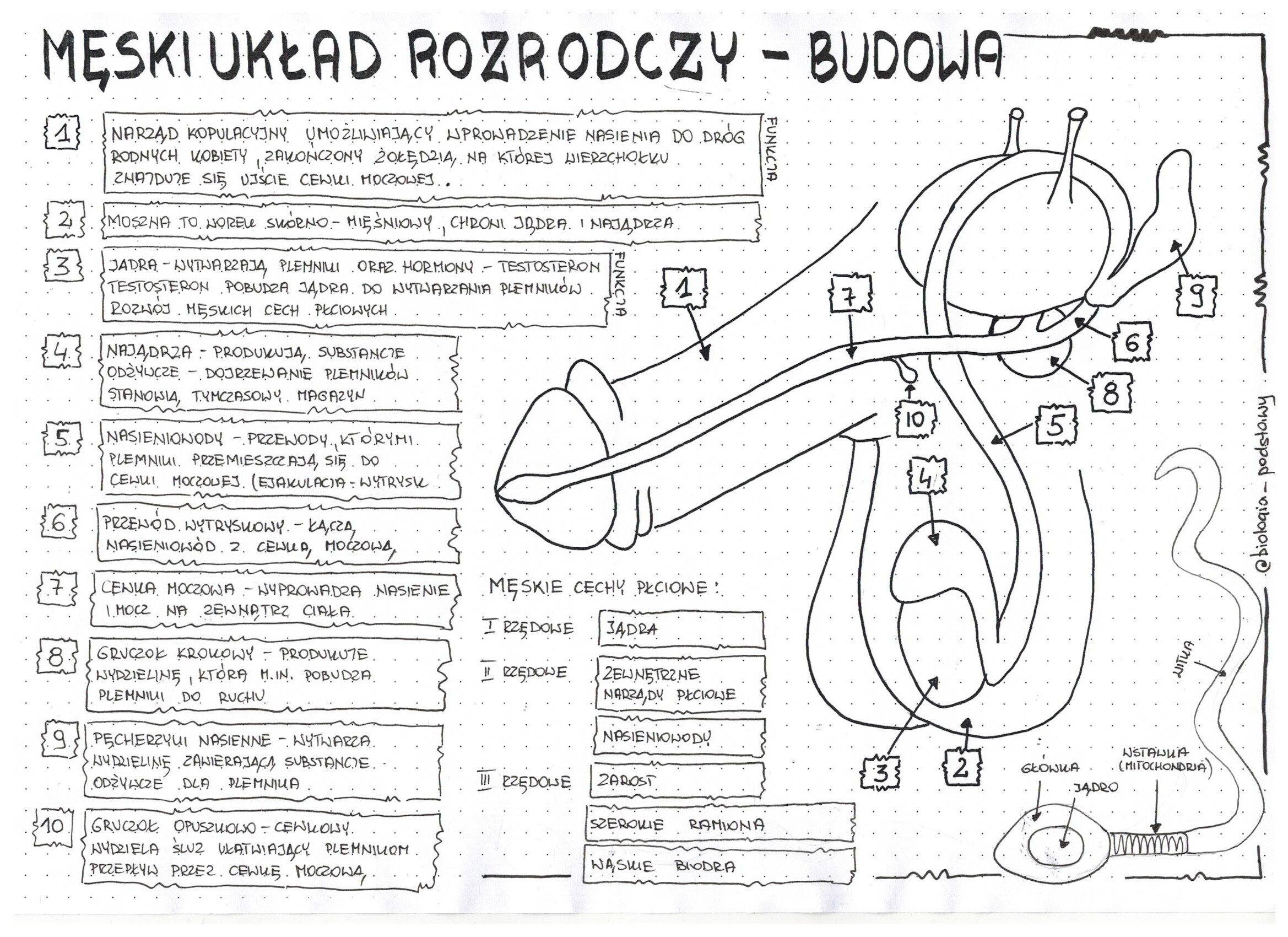 Męski układ rozrodczy - klasa 7 - sketchnotka