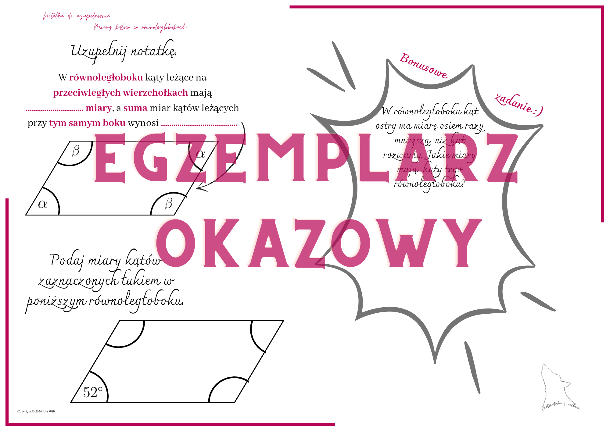 Miary kątów w równoległobokach - notatka do uzupełnienia