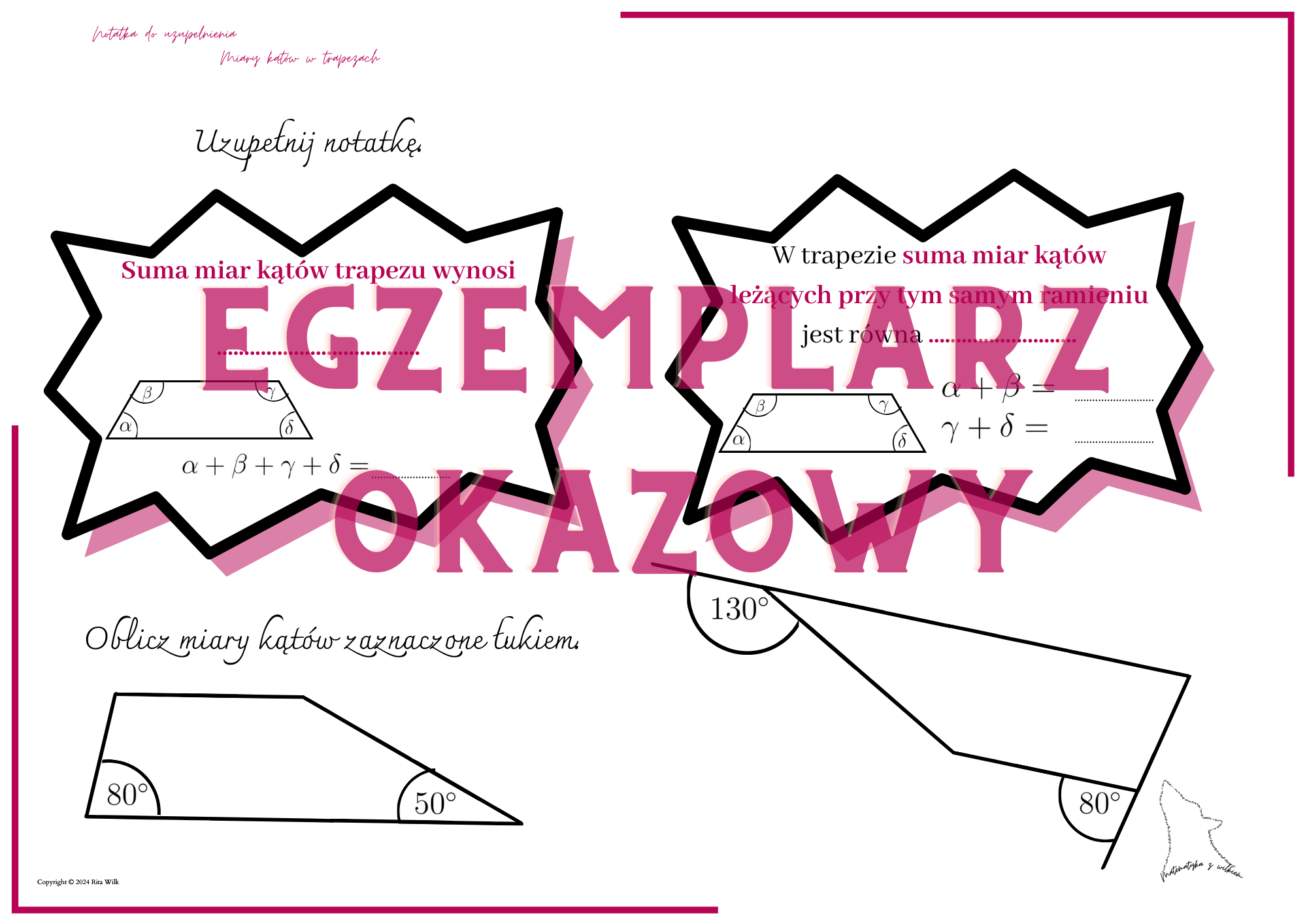 Miary kątów w trapezach - notatka do uzupełnienia