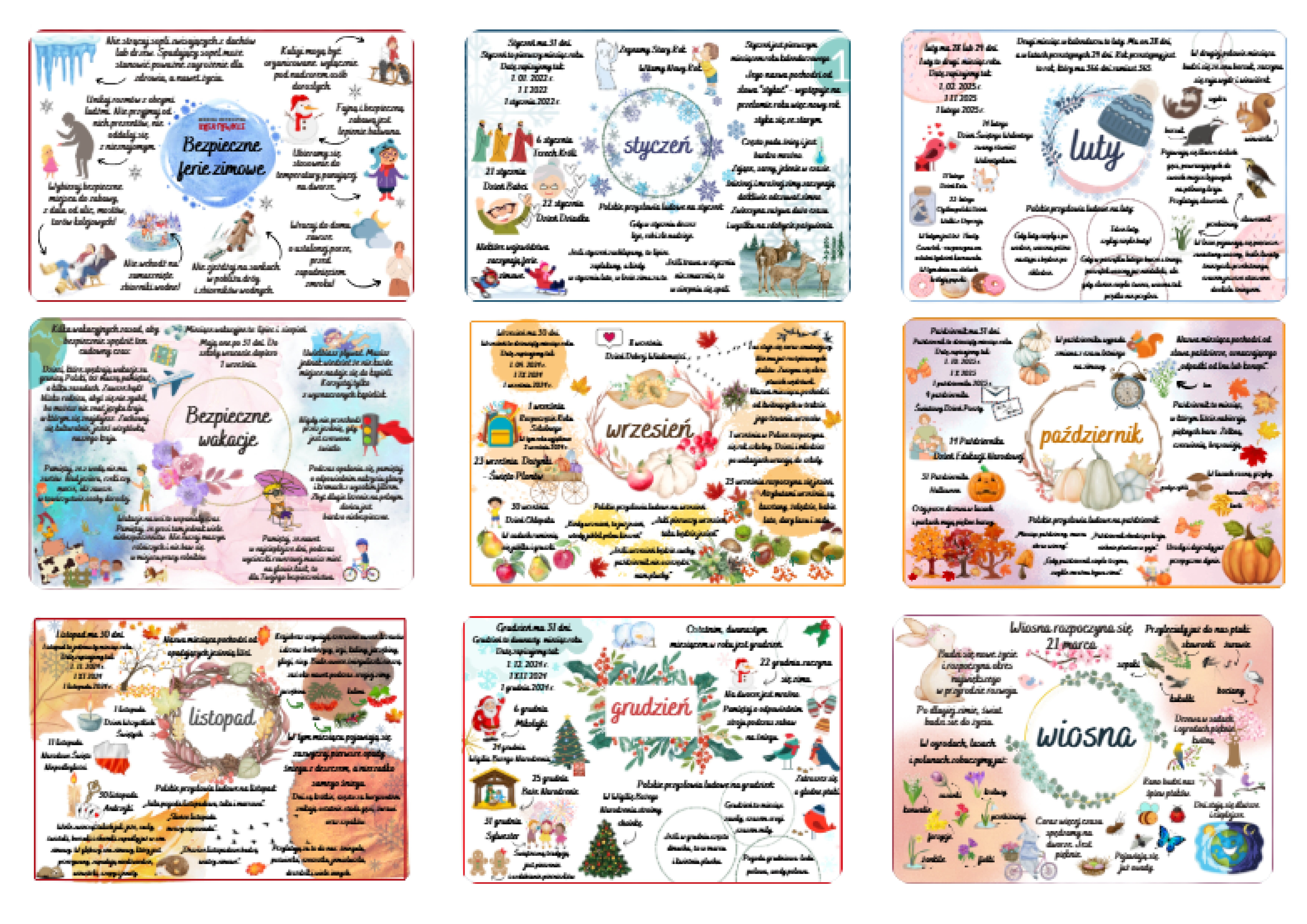Zapraszam do zakupu zestawu kolorowych grafonotek obejmujących tematykę miesięcy, pór roku, a także zasad bezpieczeństwa podczas wakacji i ferii. Materiały te wyróżniają się wysoką jakością merytoryczną i wizualną, wspierają rozwój językowy oraz percepcyjny uczniów, a przy tym doskonale sprawdzają się w pracy rewalidacyjnej i terapeutycznej.