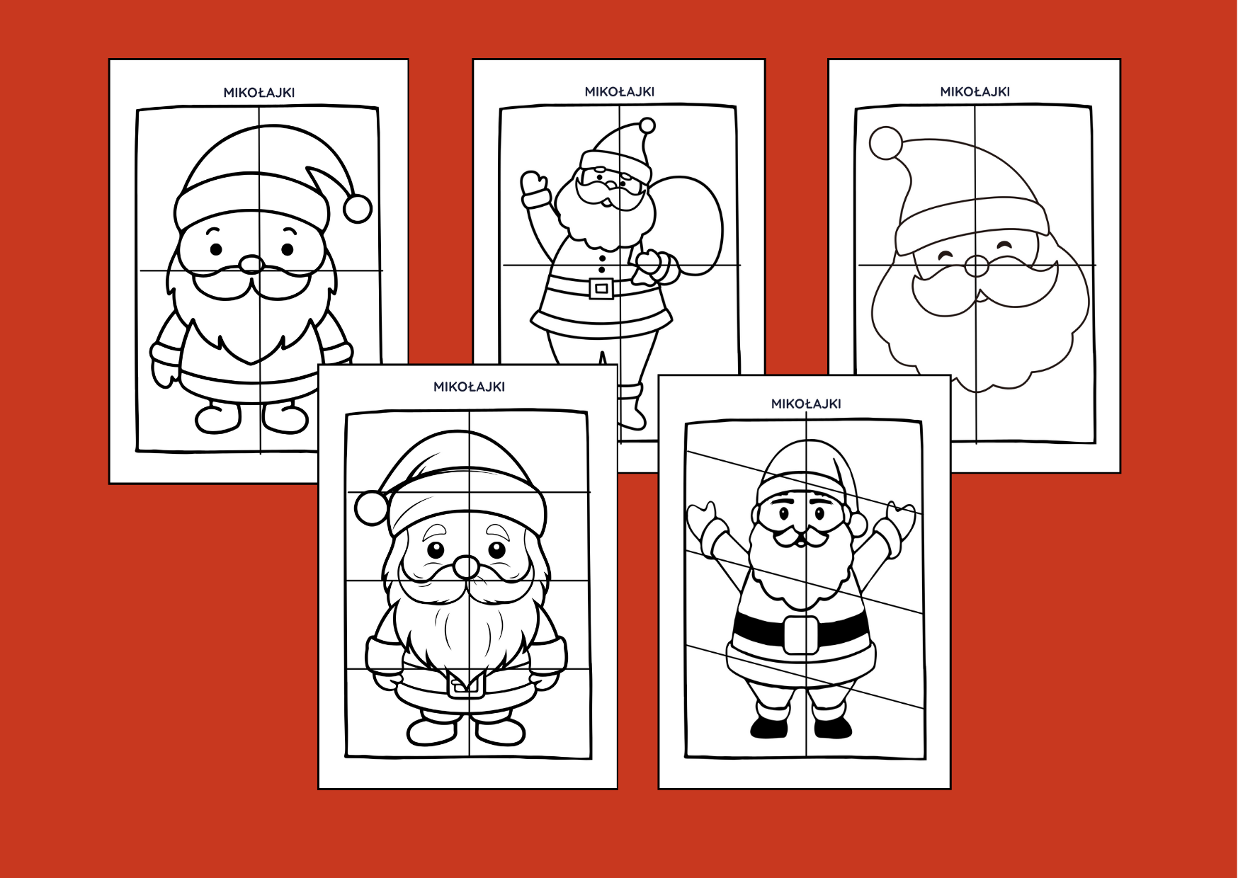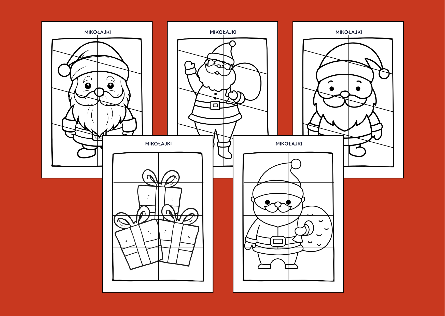 Zestaw zawiera 10 układanek w wersji czarno-białej z kredkami (3 różne wielkości kafelków i układy). Przed wycięciem dzieci mogą je pokolorować, a po wycięciu materiał można zalaminować, aby dłużej służył. Materiał przeznaczony dla młodszych dzieci.