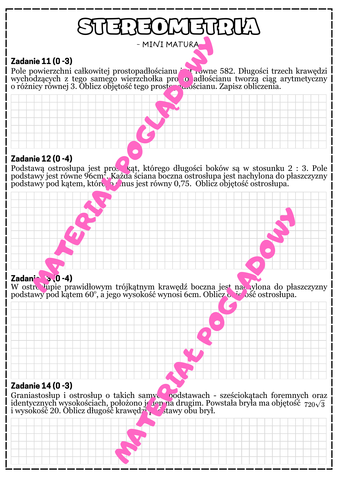 Mini matura - stereometria. Graniastosłupy. Ostrosłupy.
