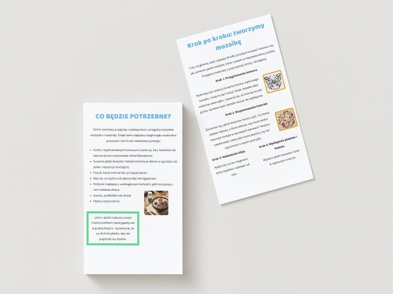 Zamów już dziś nasz poradnik „Mini-wyklejanki z naturalnych materiałów” i odkryj, jak łatwo można połączyć zabawę, naukę i ekologiczne podejście w jednej, twórczej aktywności!