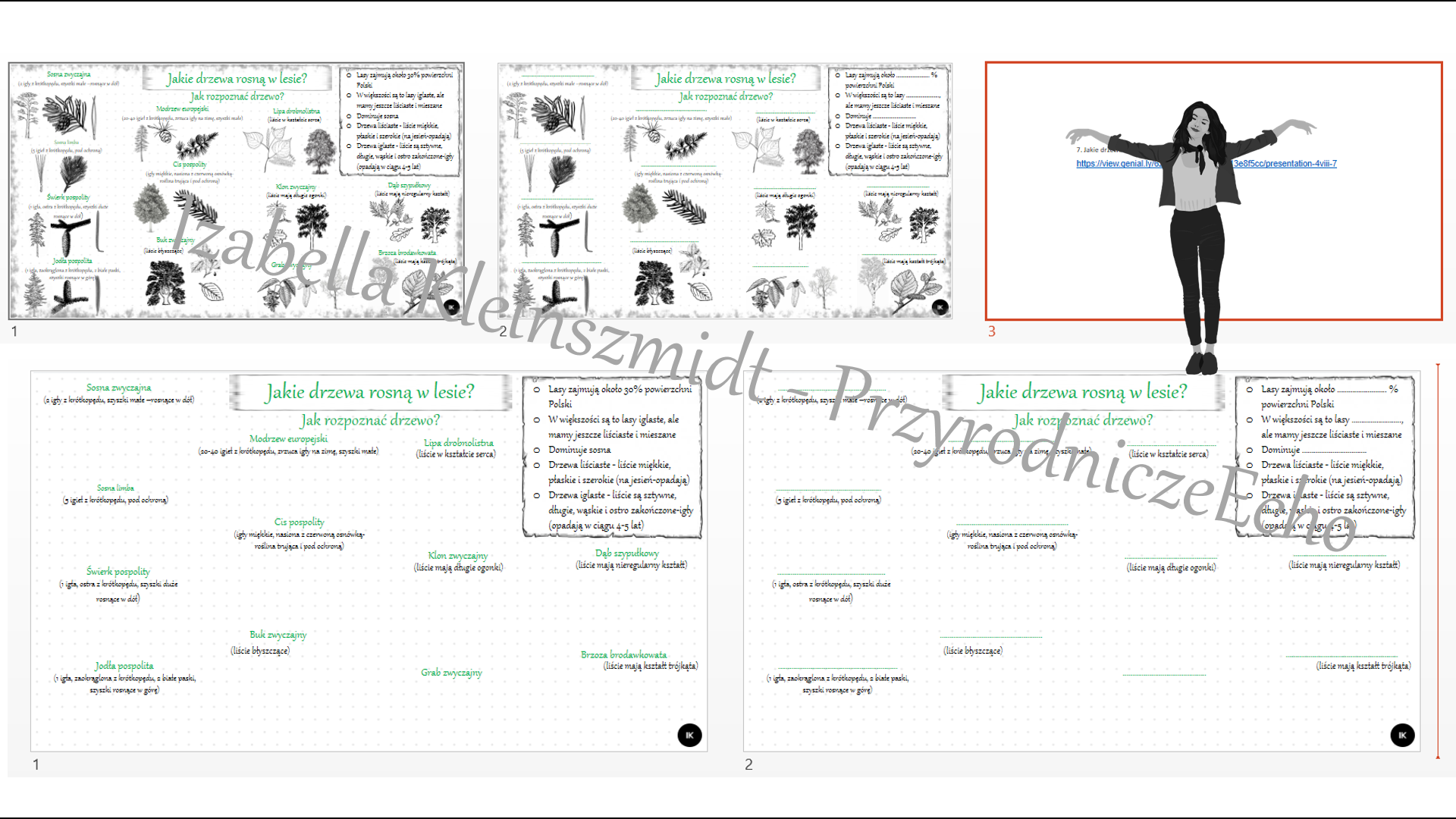 Zapraszam do zakupu mini zestawu „Jakie drzewa rosną w lesie?”, a w nim wszystko, czego potrzeba do przeprowadzenia zajęć lekcyjnych – sketchnotka i karta pracy do edycji – należy samodzielnie umieścić grafikę (w darmowych stronach czasami ich brak), ale dodaję do zestawu niekomercyjny darmowy wzór w pdf oraz gratisowy (darmowy) link do prezentacji multimedialnej, która służy do celów niekomercyjnych. Pomoce dydaktyczne komercyjne (sketchnotka i karta pracy bez grafiki) wykonane zostały w power point. Prezentacja służy do celów niekomercyjnych i wykonana jest w genial.ly. Jeśli chcecie Państwo z niej korzystać należy założyć konto na genial.ly i po kliknięciu w link ponownie kliknąć w „Reuse this genial.ly” – prezentacja będzie już na Państwa koncie i można ją używać do celów niekomercyjnych. W prezentacji umieszczone są też czasami linki do filmów edukacyjnych. Zapraszam do zakupu i miłego korzystania. Grafika komercyjnych pomocy – samodzielna, pixabay.com lub freepik.com.