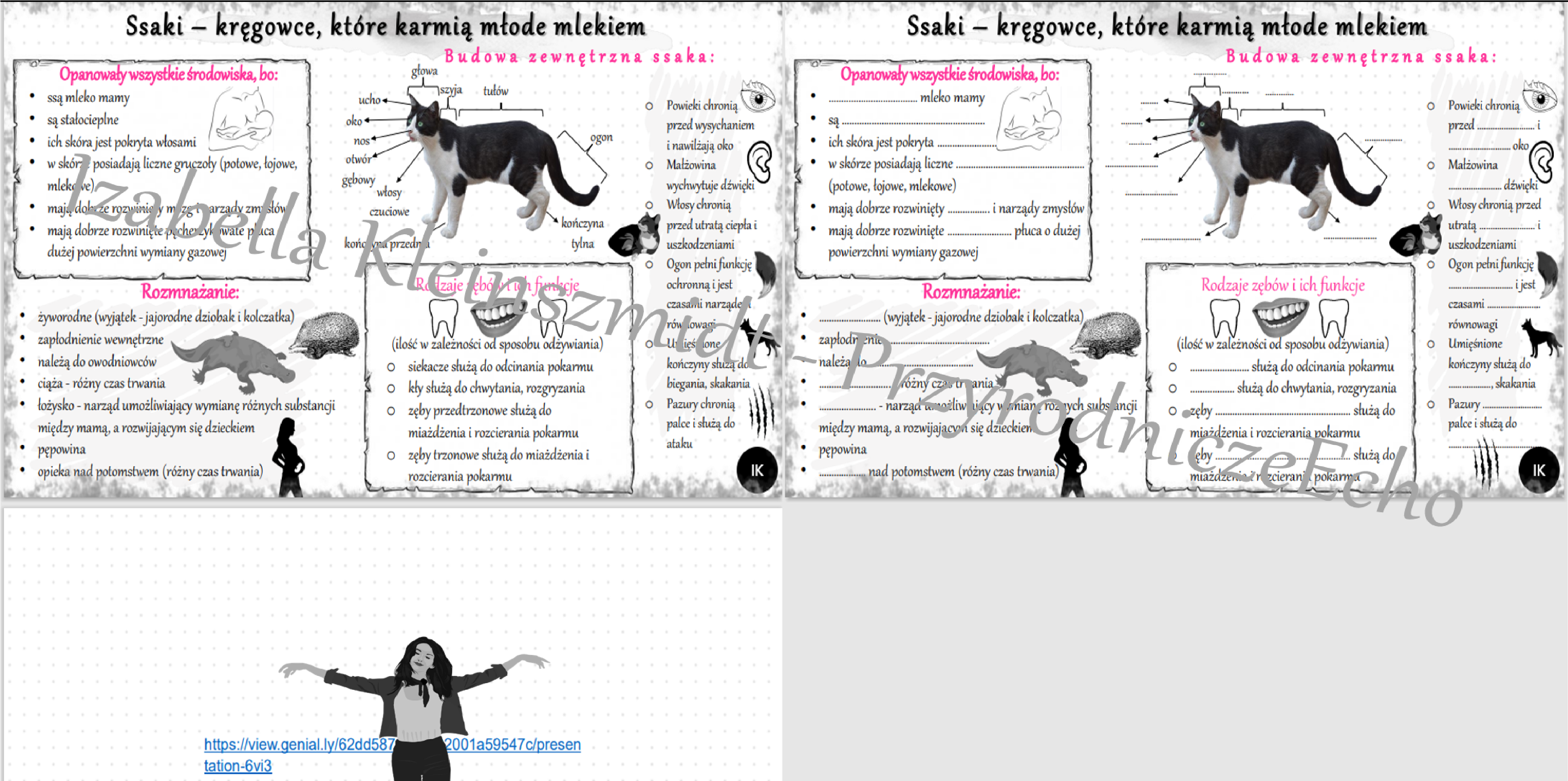 Zapraszam do zakupu mini zestawu „Ssaki – kręgowce, które karmią młode mlekiem” , a w nim wszystko, czego potrzeba do przeprowadzenia zajęć lekcyjnych – sketchnotka i karta pracy w pdf oraz gratisowy (darmowy) link do prezentacji multimedialnej, która służy do celów niekomercyjnych. Pomoce dydaktyczne komercyjne (sketchnotka i karta pracy bez grafiki) wykonane zostały w power point, ale dostajecie Państwo w pdf. Prezentacja służy do celów niekomercyjnych i wykonana jest w genial.ly. Jeśli chcecie Państwo z niej korzystać należy założyć konto na genial.ly i po kliknięciu w link koniecznie! ponownie kliknąć w „Reuse this genial.ly” – prezentacja będzie już na Państwa koncie i można ją używać do celów niekomercyjnych. Zapraszam do zakupu i miłego korzystania. Grafika komercyjnych pomocy pochodzi z pixabay.com