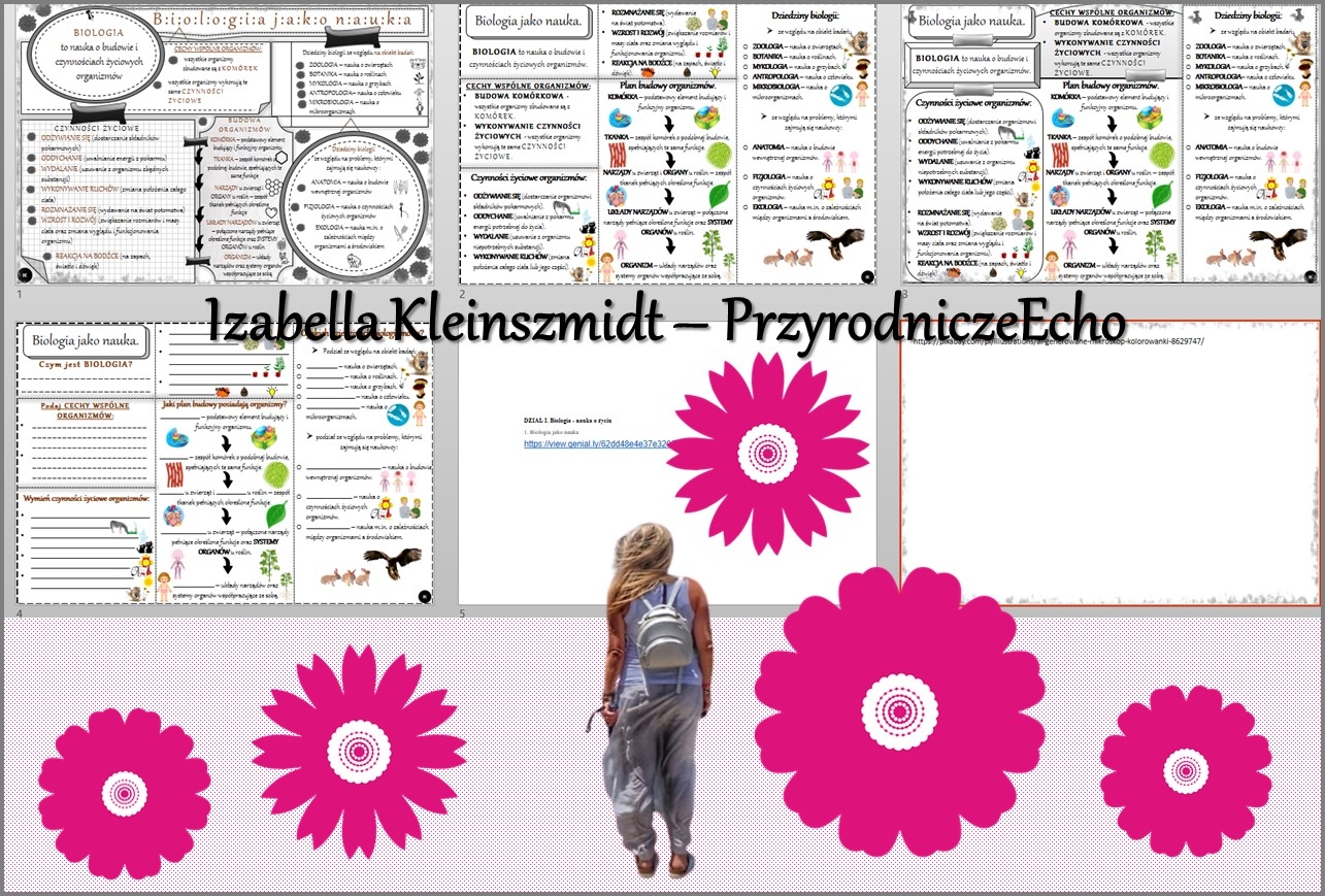 Witajcie Nazywam się Izabella Kleinszmidt (PrzyrodniczeEcho). Jestem nauczycielem przyrody, biologii, geografii i chemii w szkole podstawowej w Pomysku Wielkim. Uwielbiam mój zawód i cieszę się, że robię w życiu to co kocham. Pasja dla nauczyciela jest bardzo ważna:). Prowadzę stronę PrzyrodniczeEcho na FB, nagrywam filmiki do lekcji, konstruuję prezentacje i lekcje multimedialne, escape roomy oraz sketchnotki i karty pracy w programie power point. Zapraszam na stronę internetową mojej szkoły, gdzie znajdują się (niektóre darmowe) opracowania lekcji do przyrody, biologii, geografii i chemii w SP. Adres strony internetowej: https://sppomyskwielki.edu.pl - zakładka - dla ucznia. Od niedawna zapraszam również na moją stronę internetową: https://ikleinszmidt.wixsite.com/przyrodniczeecho Zapraszam do korzystania z mojej pracy:) Bardzo proszę również czytać opisy, aby wiedzieć, jaki materiał znajduje się w danym pliku. Zachęcam do kontaktu w razie jakichś pytań lub błędów w pomocach - brakach lub literówkach-wszystko można naprawić? Jakich materiałów możecie Państwo oczekiwać? SKETCHNOTKA - notatka kompletna z określonego tematu KARTA PRACY - zazwyczaj sketchnotka z wykropkowanymi miejscami PREZENTACJA MULTIMEDIALNA - kompletne wiadomości do odpowiedniego tematu wraz z grafiką i tekstem - zarówno w power point jak i genially - tę koniecznie należy zapisać na swoim koncie! LEKCJA MULTIMEDIALNA - pomysł na przeprowadzenie lekcji - taki "tok lekcji" - skrócony scenariusz ZESTAWY - proszę się wczytać w opis, informuję co mieści się w konkretnym zestawie:) Pozdrawiam cieplutko:)