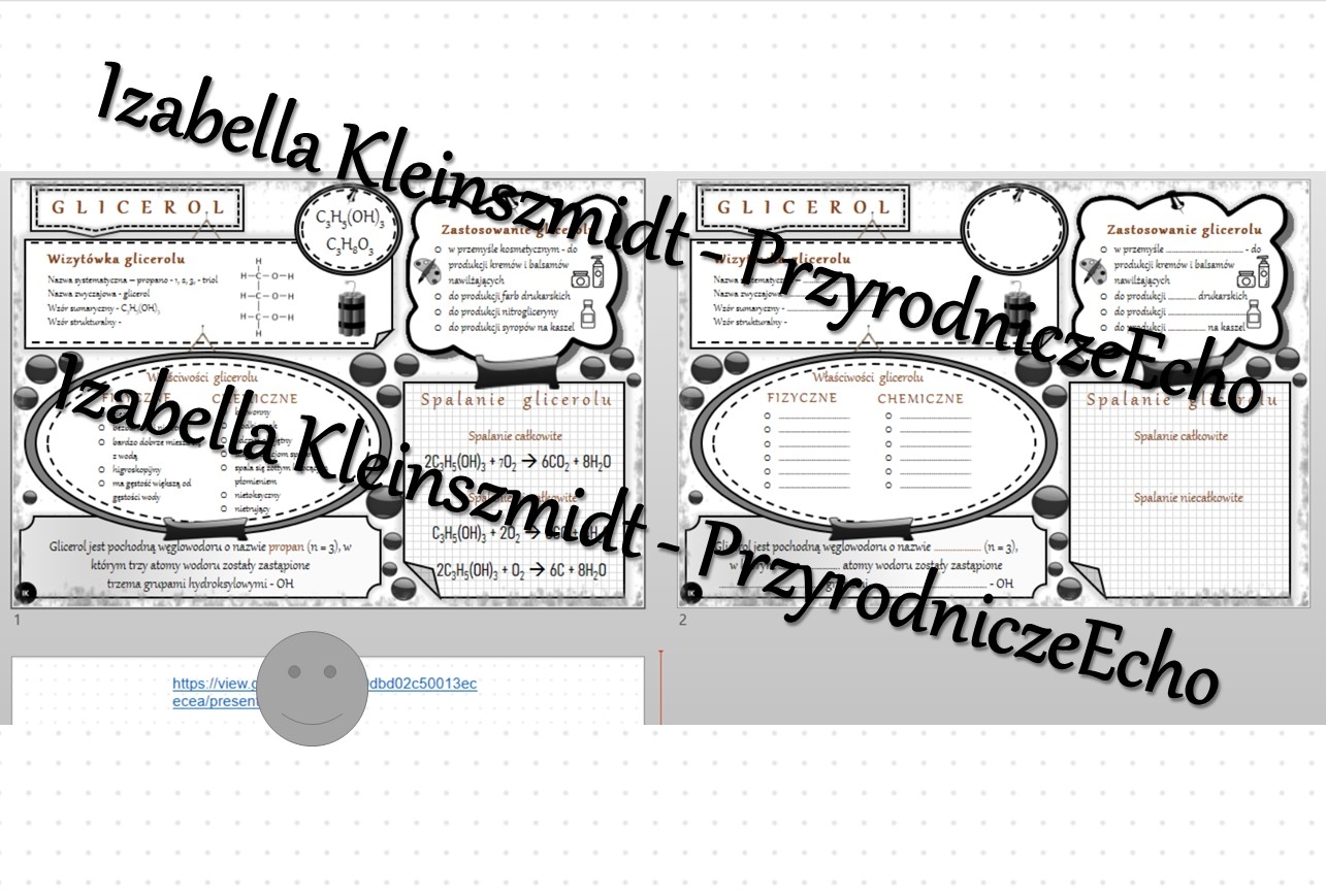 Minizestaw na temat „Glicerol” – sketchnotka + karta pracy w power point + gratisowy link do prezentacji multimedialnej niekomercyjnej wykonanej w genial.ly do indywidualnego pobrania i użycia do celów niekomercyjnych. Chemia 8, „Pochodne węglowodorów”