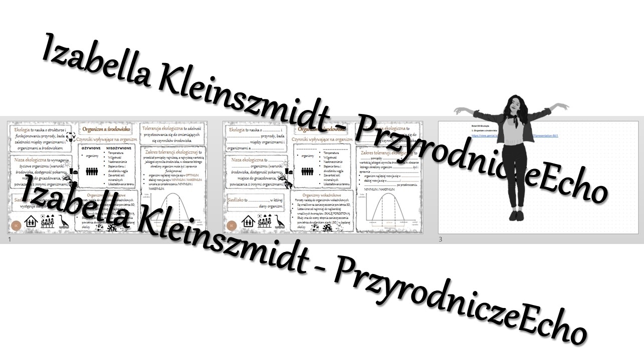 Witajcie Nazywam się Izabella Kleinszmidt (PrzyrodniczeEcho). Jestem nauczycielem przyrody, biologii, geografii i chemii w szkole podstawowej w Pomysku Wielkim. Uwielbiam mój zawód i cieszę się, że robię w życiu to co kocham. Pasja dla nauczyciela jest bardzo ważna:). Prowadzę stronę PrzyrodniczeEcho na FB, nagrywam filmiki do lekcji, konstruuję prezentacje i lekcje multimedialne, escape roomy oraz sketchnotki i karty pracy w programie power point. Zapraszam na stronę internetową mojej szkoły, gdzie znajdują się (niektóre darmowe) opracowania lekcji do przyrody, biologii, geografii i chemii w SP. Adres strony internetowej: https://sppomyskwielki.edu.pl - zakładka - dla ucznia. Od niedawna zapraszam również na moją stronę internetową: https://ikleinszmidt.wixsite.com/przyrodniczeecho Zapraszam do korzystania z mojej pracy:) Bardzo proszę również czytać opisy, aby wiedzieć, jaki materiał znajduje się w danym pliku. Zachęcam do kontaktu w razie jakichś pytań lub błędów w pomocach - brakach lub literówkach-wszystko można naprawić? Jakich materiałów możecie Państwo oczekiwać? SKETCHNOTKA - notatka kompletna z określonego tematu KARTA PRACY - zazwyczaj sketchnotka z wykropkowanymi miejscami PREZENTACJA MULTIMEDIALNA - kompletne wiadomości do odpowiedniego tematu wraz z grafiką i tekstem - zarówno w power point jak i genially - tę koniecznie należy zapisać na swoim koncie! LEKCJA MULTIMEDIALNA - pomysł na przeprowadzenie lekcji - taki "tok lekcji" - skrócony scenariusz ZESTAWY - proszę się wczytać w opis, informuję co mieści się w konkretnym zestawie:) Pozdrawiam cieplutko:)