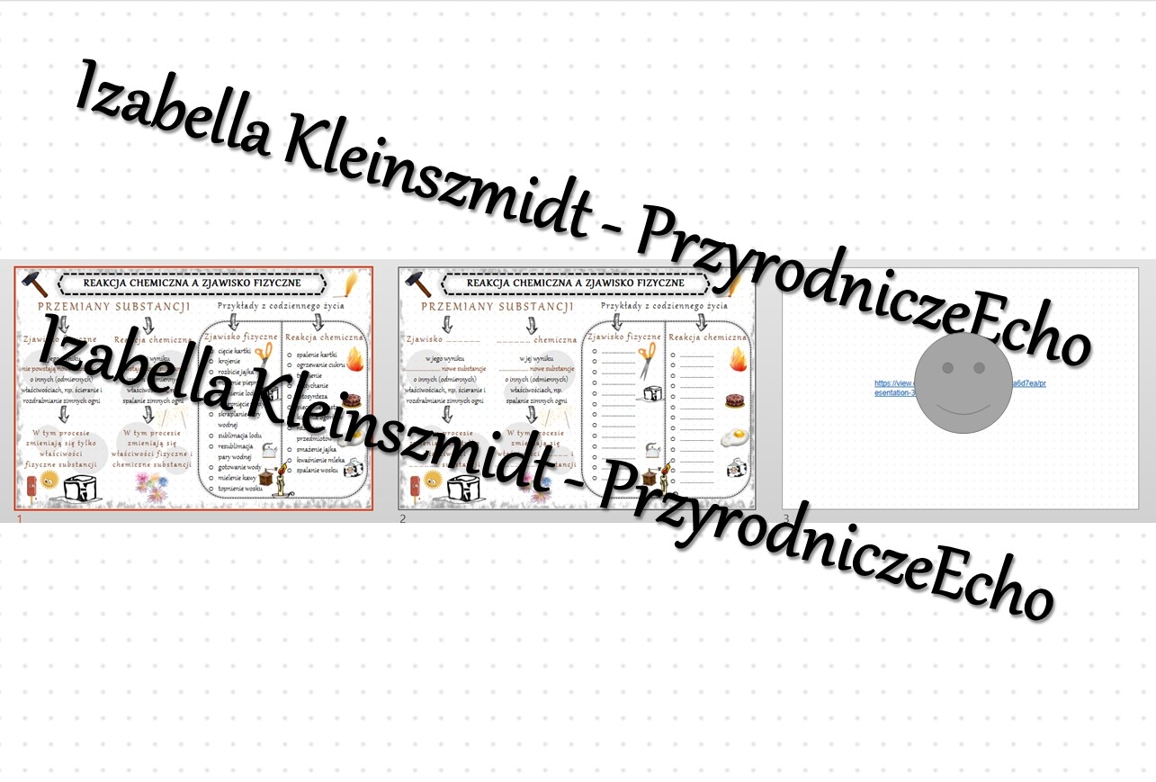 Witajcie Nazywam się Izabella Kleinszmidt (PrzyrodniczeEcho). Jestem nauczycielem przyrody, biologii, geografii i chemii w szkole podstawowej w Pomysku Wielkim. Uwielbiam mój zawód i cieszę się, że robię w życiu to co kocham. Pasja dla nauczyciela jest bardzo ważna:). Prowadzę stronę PrzyrodniczeEcho na FB, nagrywam filmiki do lekcji, konstruuję prezentacje i lekcje multimedialne, escape roomy oraz sketchnotki i karty pracy w programie power point. Zapraszam na stronę internetową mojej szkoły, gdzie znajdują się (niektóre darmowe) opracowania lekcji do przyrody, biologii, geografii i chemii w SP. Adres strony internetowej: https://sppomyskwielki.edu.pl - zakładka - dla ucznia. Od niedawna zapraszam również na moją stronę internetową: https://ikleinszmidt.wixsite.com/przyrodniczeecho Zapraszam do korzystania z mojej pracy:) Bardzo proszę również czytać opisy, aby wiedzieć, jaki materiał znajduje się w danym pliku. Zachęcam do kontaktu w razie jakichś pytań lub błędów w pomocach - brakach lub literówkach-wszystko można naprawić? Jakich materiałów możecie Państwo oczekiwać? SKETCHNOTKA - notatka kompletna z określonego tematu KARTA PRACY - zazwyczaj sketchnotka z wykropkowanymi miejscami PREZENTACJA MULTIMEDIALNA - kompletne wiadomości do odpowiedniego tematu wraz z grafiką i tekstem - zarówno w power point jak i genially - tę koniecznie należy zapisać na swoim koncie! LEKCJA MULTIMEDIALNA - pomysł na przeprowadzenie lekcji - taki "tok lekcji" - skrócony scenariusz ZESTAWY - proszę się wczytać w opis, informuję co mieści się w konkretnym zestawie:) Pozdrawiam cieplutko:)