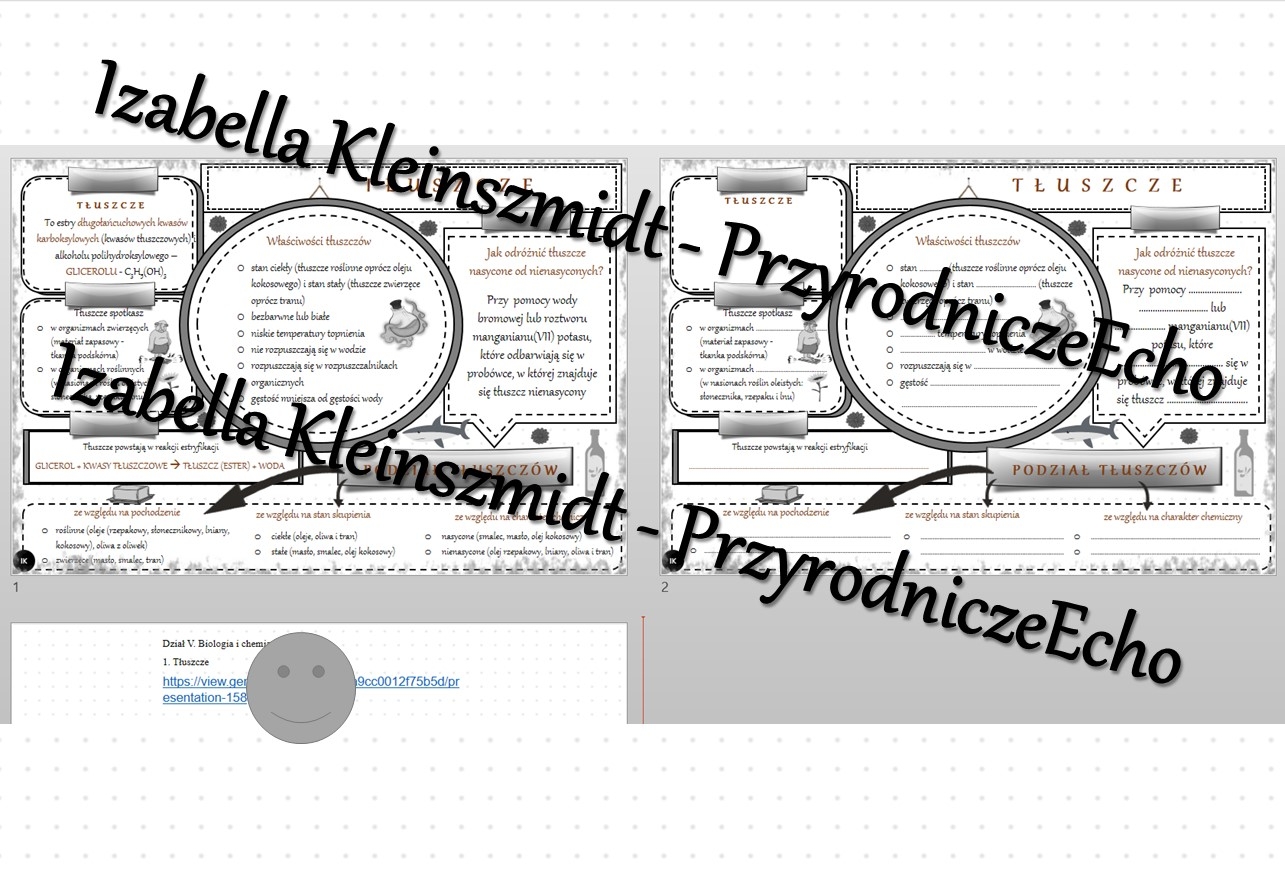 Minizestaw na temat „Tłuszcze” – sketchnotka + karta pracy w power point + gratisowy link do prezentacji multimedialnej niekomercyjnej wykonanej w genial.ly do indywidualnego pobrania i użycia do celów niekomercyjnych. Chemia 8, „Biologia i chemia”