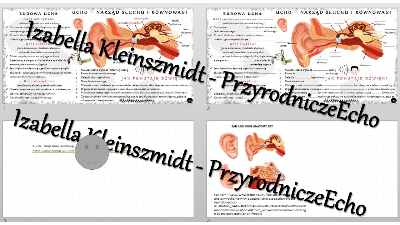 Minizestaw na temat „Ucho - narząd słuchu i równowagi” – sketchnotka + karta pracy w power point + gratisowy link do prezentacji multimedialnej niekomercyjnej wykonanej w genial.ly do indywidualnego pobrania i użycia do celów niekomercyjnych. Biologia 7,