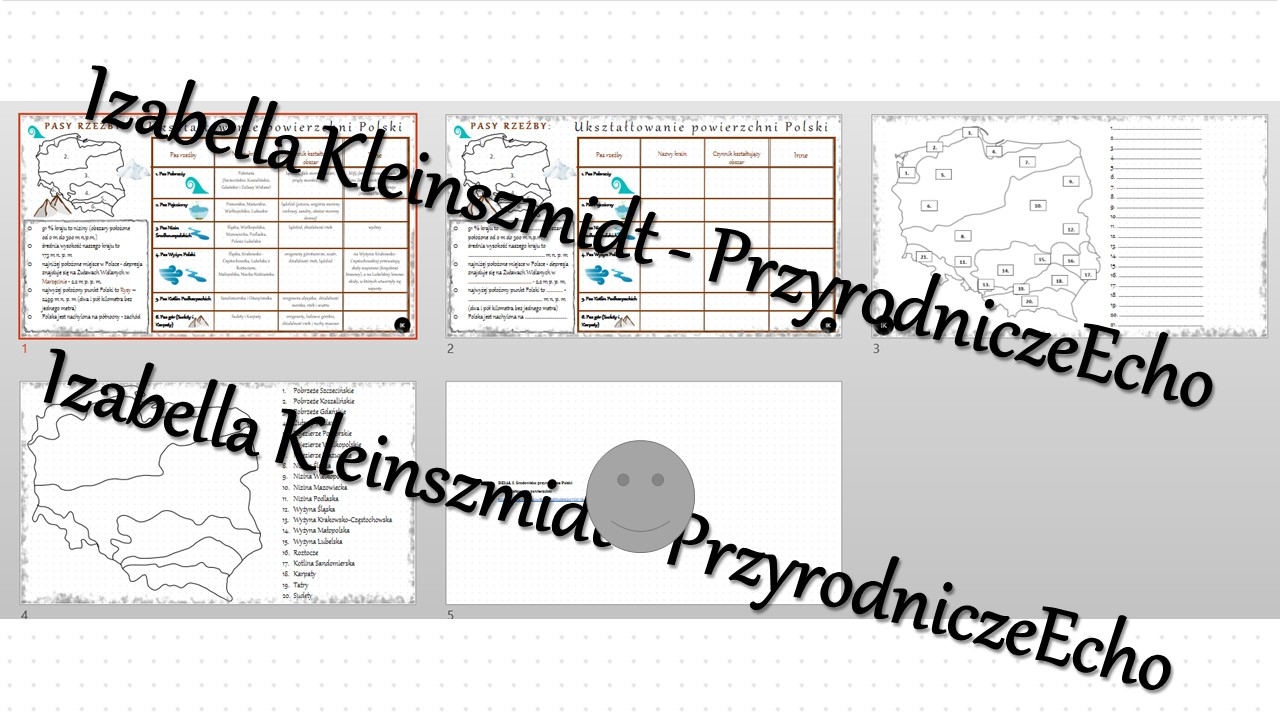 Witajcie Nazywam się Izabella Kleinszmidt (PrzyrodniczeEcho). Jestem nauczycielem przyrody, biologii, geografii i chemii w szkole podstawowej w Pomysku Wielkim. Uwielbiam mój zawód i cieszę się, że robię w życiu to co kocham. Pasja dla nauczyciela jest bardzo ważna:). Prowadzę stronę PrzyrodniczeEcho na FB, nagrywam filmiki do lekcji, konstruuję prezentacje i lekcje multimedialne, escape roomy oraz sketchnotki i karty pracy w programie power point. Zapraszam na stronę internetową mojej szkoły, gdzie znajdują się (niektóre darmowe) opracowania lekcji do przyrody, biologii, geografii i chemii w SP. Adres strony internetowej: https://sppomyskwielki.edu.pl - zakładka - dla ucznia. Od niedawna zapraszam również na moją stronę internetową: https://ikleinszmidt.wixsite.com/przyrodniczeecho Zapraszam do korzystania z mojej pracy:) Bardzo proszę również czytać opisy, aby wiedzieć, jaki materiał znajduje się w danym pliku. Zachęcam do kontaktu w razie jakichś pytań lub błędów w pomocach - brakach lub literówkach-wszystko można naprawić? Jakich materiałów możecie Państwo oczekiwać? SKETCHNOTKA - notatka kompletna z określonego tematu KARTA PRACY - zazwyczaj sketchnotka z wykropkowanymi miejscami PREZENTACJA MULTIMEDIALNA - kompletne wiadomości do odpowiedniego tematu wraz z grafiką i tekstem - zarówno w power point jak i genially - tę koniecznie należy zapisać na swoim koncie! LEKCJA MULTIMEDIALNA - pomysł na przeprowadzenie lekcji - taki "tok lekcji" - skrócony scenariusz ZESTAWY - proszę się wczytać w opis, informuję co mieści się w konkretnym zestawie:) Pozdrawiam cieplutko:)