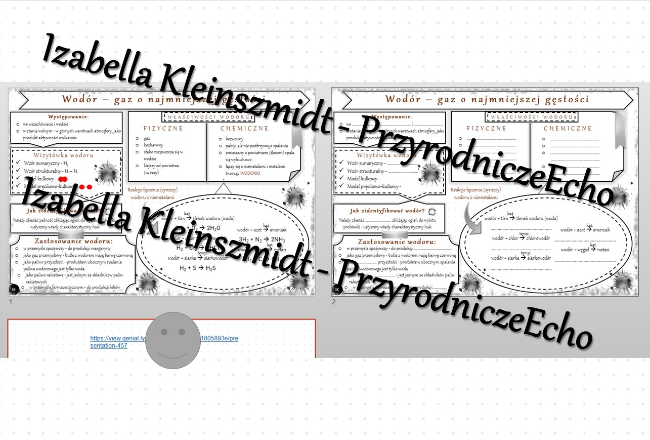 Minizestaw na temat „Wodór – gaz o najmniejszej gęstości” – sketchnotka + karta pracy w power point + gratisowy link do prezentacji multimedialnej niekomercyjnej wykonanej w genial.ly do indywidualnego pobrania i użycia do celów niekomercyjnych. Chemia 7