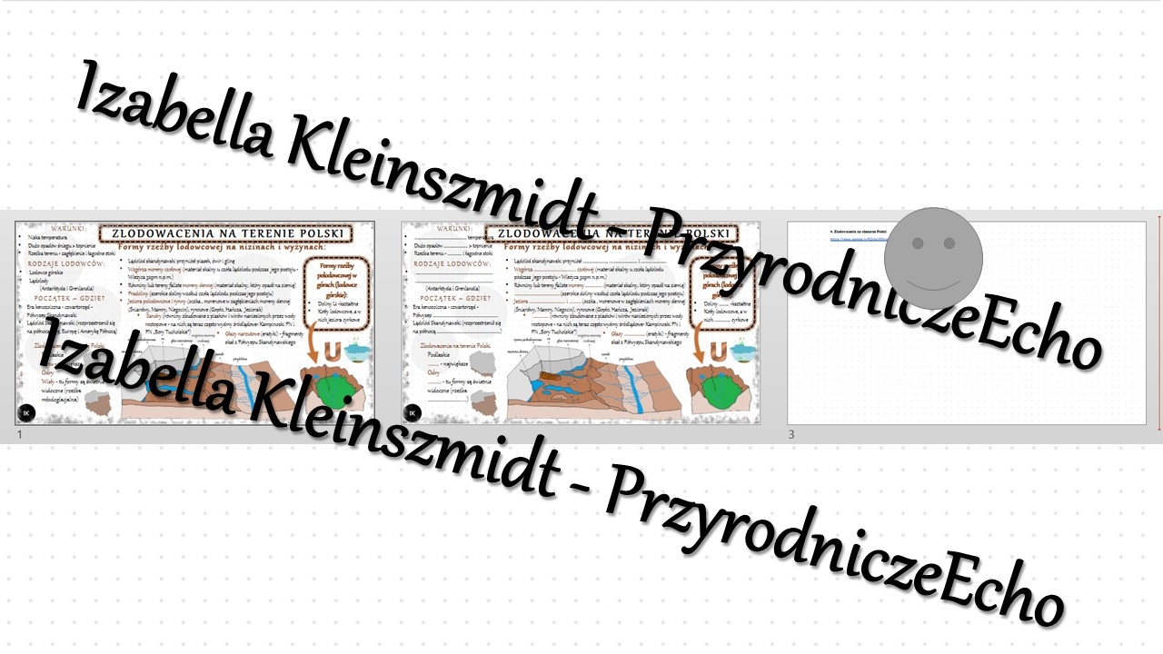 Witajcie Nazywam się Izabella Kleinszmidt (PrzyrodniczeEcho). Jestem nauczycielem przyrody, biologii, geografii i chemii w szkole podstawowej w Pomysku Wielkim. Uwielbiam mój zawód i cieszę się, że robię w życiu to co kocham. Pasja dla nauczyciela jest bardzo ważna:). Prowadzę stronę PrzyrodniczeEcho na FB, nagrywam filmiki do lekcji, konstruuję prezentacje i lekcje multimedialne, escape roomy oraz sketchnotki i karty pracy w programie power point. Zapraszam na stronę internetową mojej szkoły, gdzie znajdują się (niektóre darmowe) opracowania lekcji do przyrody, biologii, geografii i chemii w SP. Adres strony internetowej: https://sppomyskwielki.edu.pl - zakładka - dla ucznia. Od niedawna zapraszam również na moją stronę internetową: https://ikleinszmidt.wixsite.com/przyrodniczeecho Zapraszam do korzystania z mojej pracy:) Bardzo proszę również czytać opisy, aby wiedzieć, jaki materiał znajduje się w danym pliku. Zachęcam do kontaktu w razie jakichś pytań lub błędów w pomocach - brakach lub literówkach-wszystko można naprawić? Jakich materiałów możecie Państwo oczekiwać? SKETCHNOTKA - notatka kompletna z określonego tematu KARTA PRACY - zazwyczaj sketchnotka z wykropkowanymi miejscami PREZENTACJA MULTIMEDIALNA - kompletne wiadomości do odpowiedniego tematu wraz z grafiką i tekstem - zarówno w power point jak i genially - tę koniecznie należy zapisać na swoim koncie! LEKCJA MULTIMEDIALNA - pomysł na przeprowadzenie lekcji - taki "tok lekcji" - skrócony scenariusz ZESTAWY - proszę się wczytać w opis, informuję co mieści się w konkretnym zestawie:) Pozdrawiam cieplutko:)