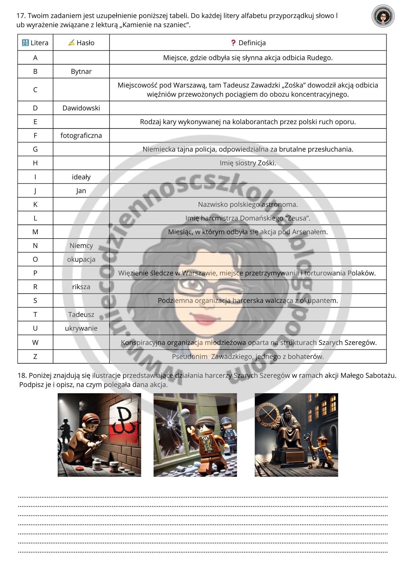 🎨 Ilustracje w stylu LEGO – każda lektura została wzbogacona o atrakcyjne wizualizacje, które pomagają uczniom lepiej zapamiętać treść i w angażujący sposób przyswajać materiał.
