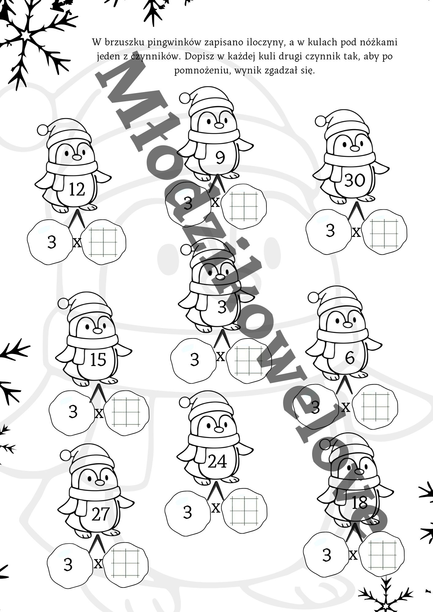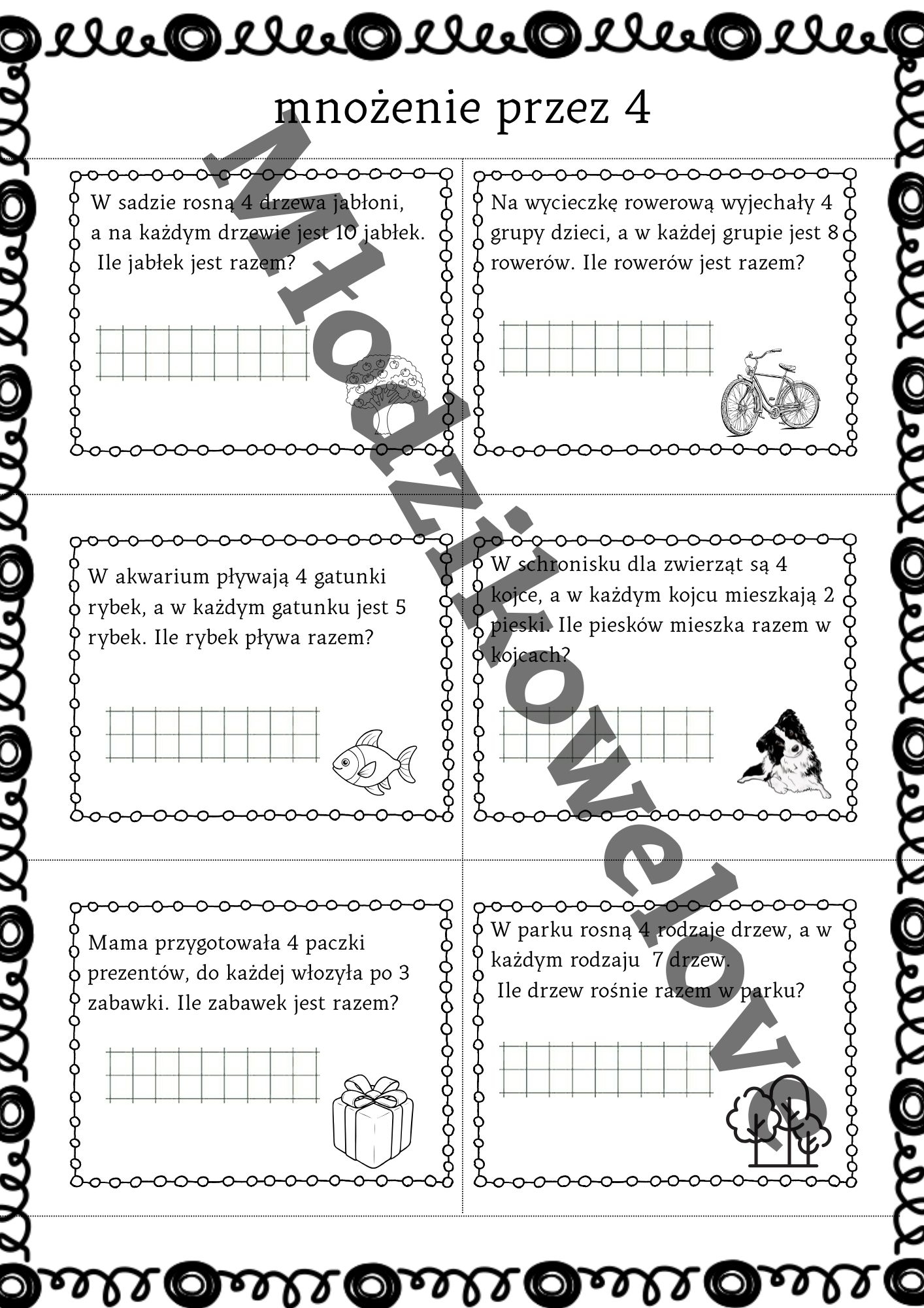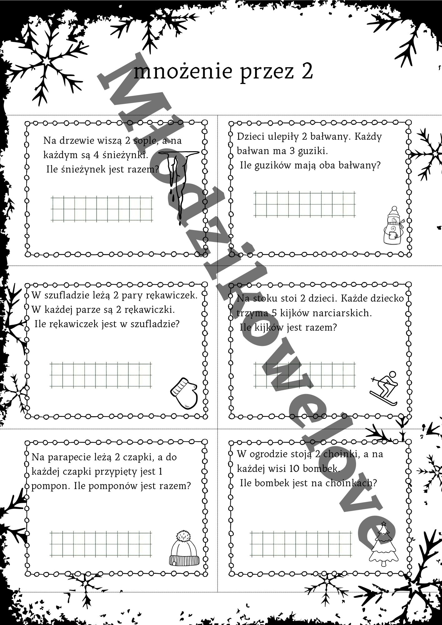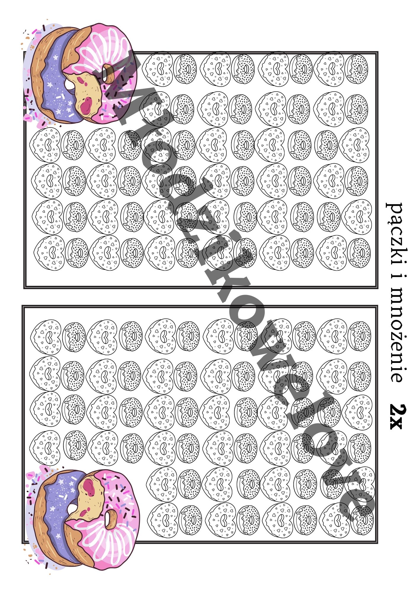 Materiał zawiera krótkie zadania tekstowe na mnożenie przez wszystkie liczby w zakresie10. Może posłużyć jako szybkie kartkówki sprawdzające (po wycięciu) lub jako całościowa karta pracy. Do każdego mnożenia dodatkowa karta pracy oraz na koniec- stolikowa gra dla dwojga mniżenie przez 2 w pączkowym klimacie :) Pakiet zawiera kartę ciągi matematyczne, który ułatwia rozumienie działania mnożenia.
