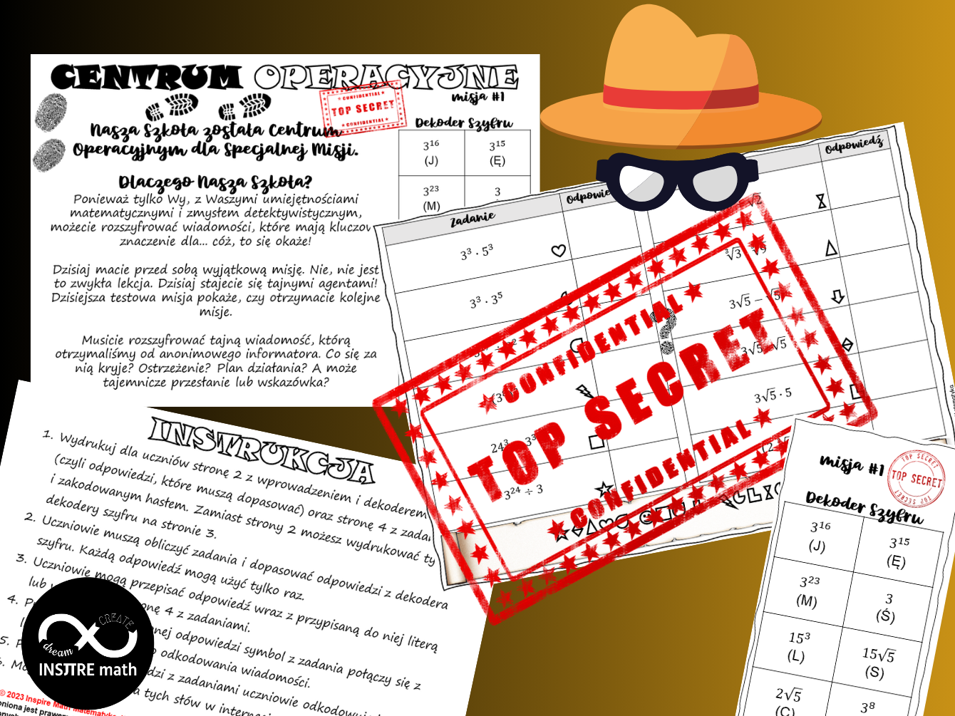 Misja specjalna: Działania na potęgach i pierwiastkach. Materiał możesz wykorzystać na Dzień Kryptologii.