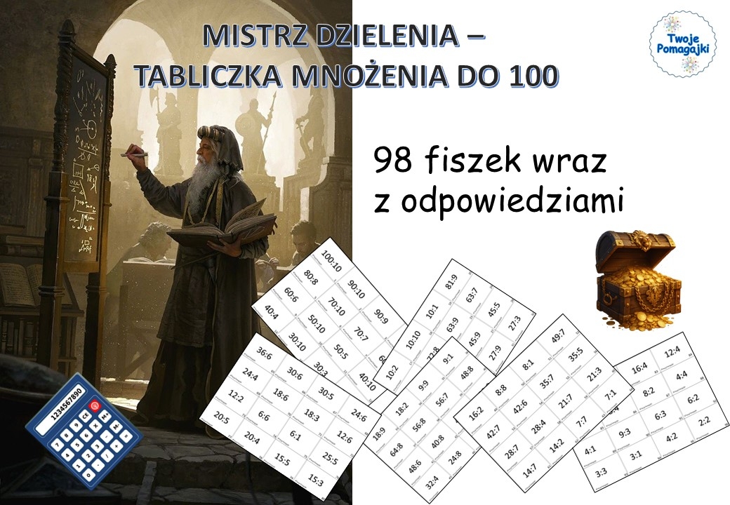 Zestaw można dowolnie komponować - np w zakresie dzielenia do 20,30,50,100 itp, dzielenie przez daną liczbę itp.