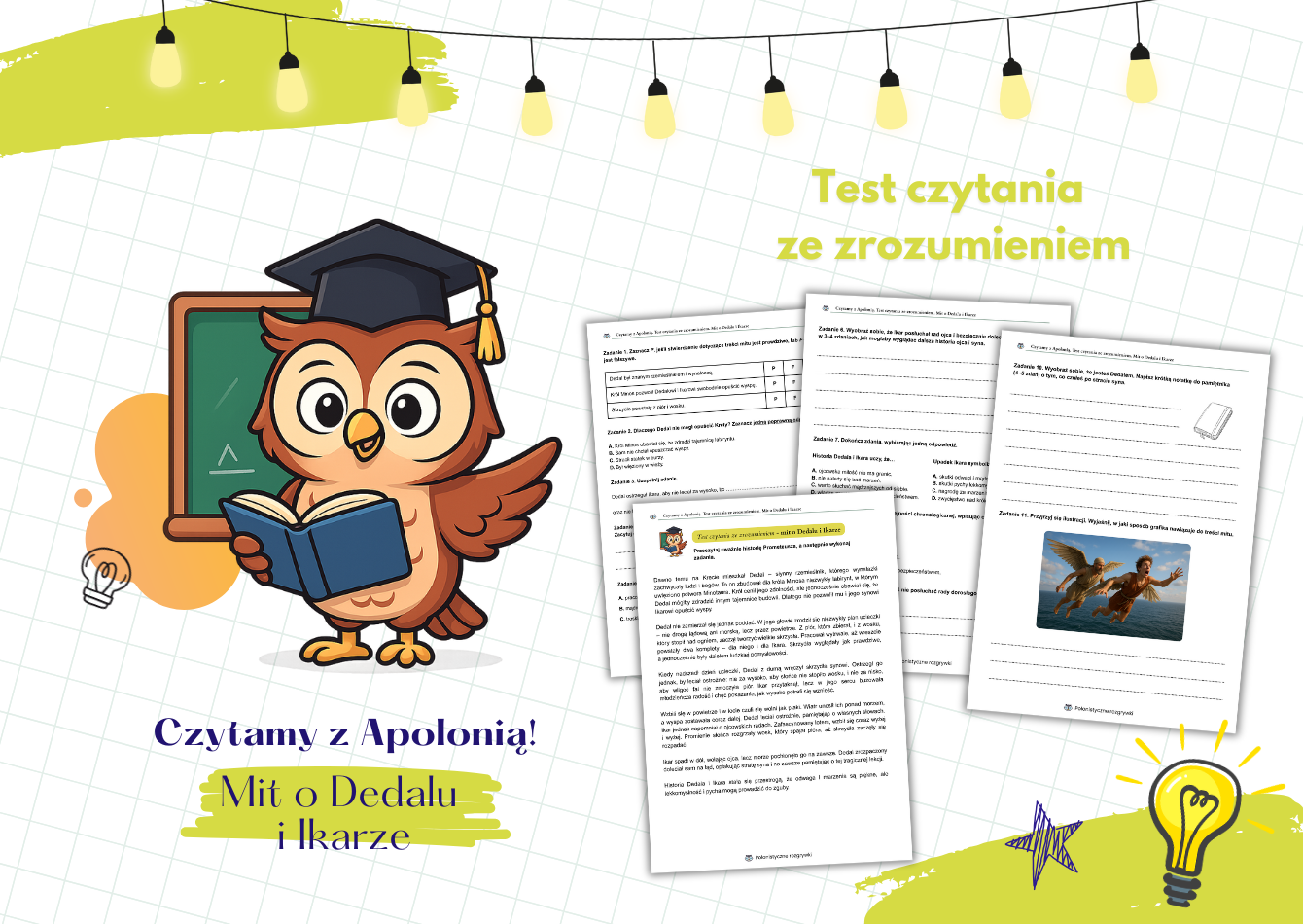 🪽 Mit o Dedalu i Ikarze – test czytania ze zrozumieniem (klasa 5–6) PDF. Odpowiedzi