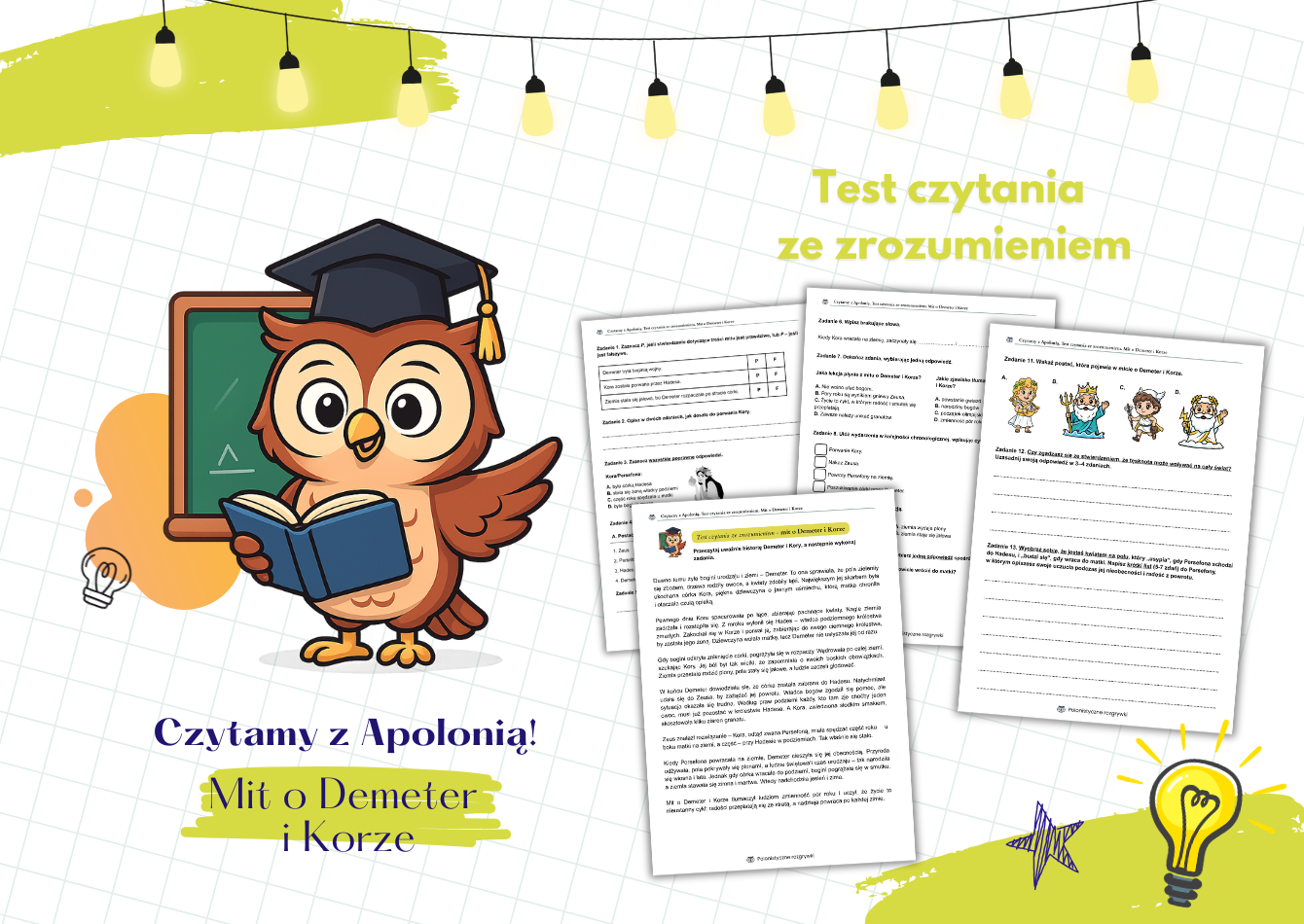 Gotowy materiał edukacyjny oparty na parafrazie mitu o Demeter i Korze. W pakiecie znajdziesz tekst opowiadania (ok. 350 słów) napisany językiem dostosowanym do uczniów szkoły podstawowej oraz bogaty zestaw zadań w formie czytania ze zrozumieniem.
