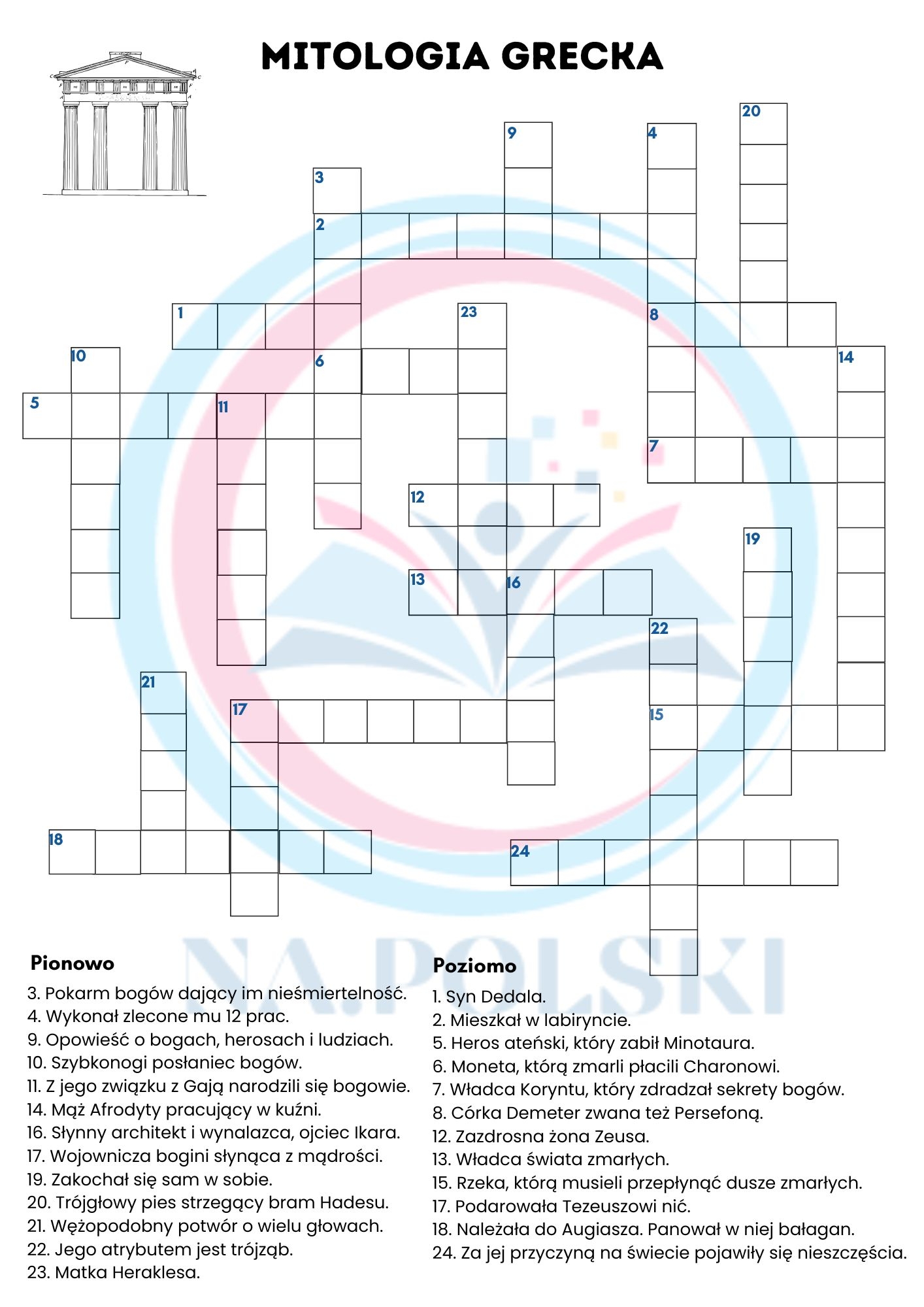 Mitologia grecka - krzyżówka wraz z rozwiązaniem.