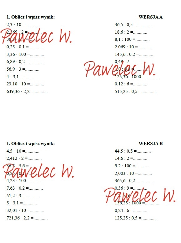 Plik składa się z dwóch stron. Na pierwszej jest kartkówka (2 grupy) - wystarczy wydrukować i przeciąć, na drugiej są odpowiedzi.