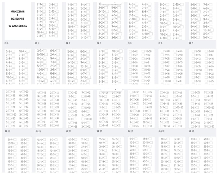 Mnożenie i dzielenie w zakresie 50