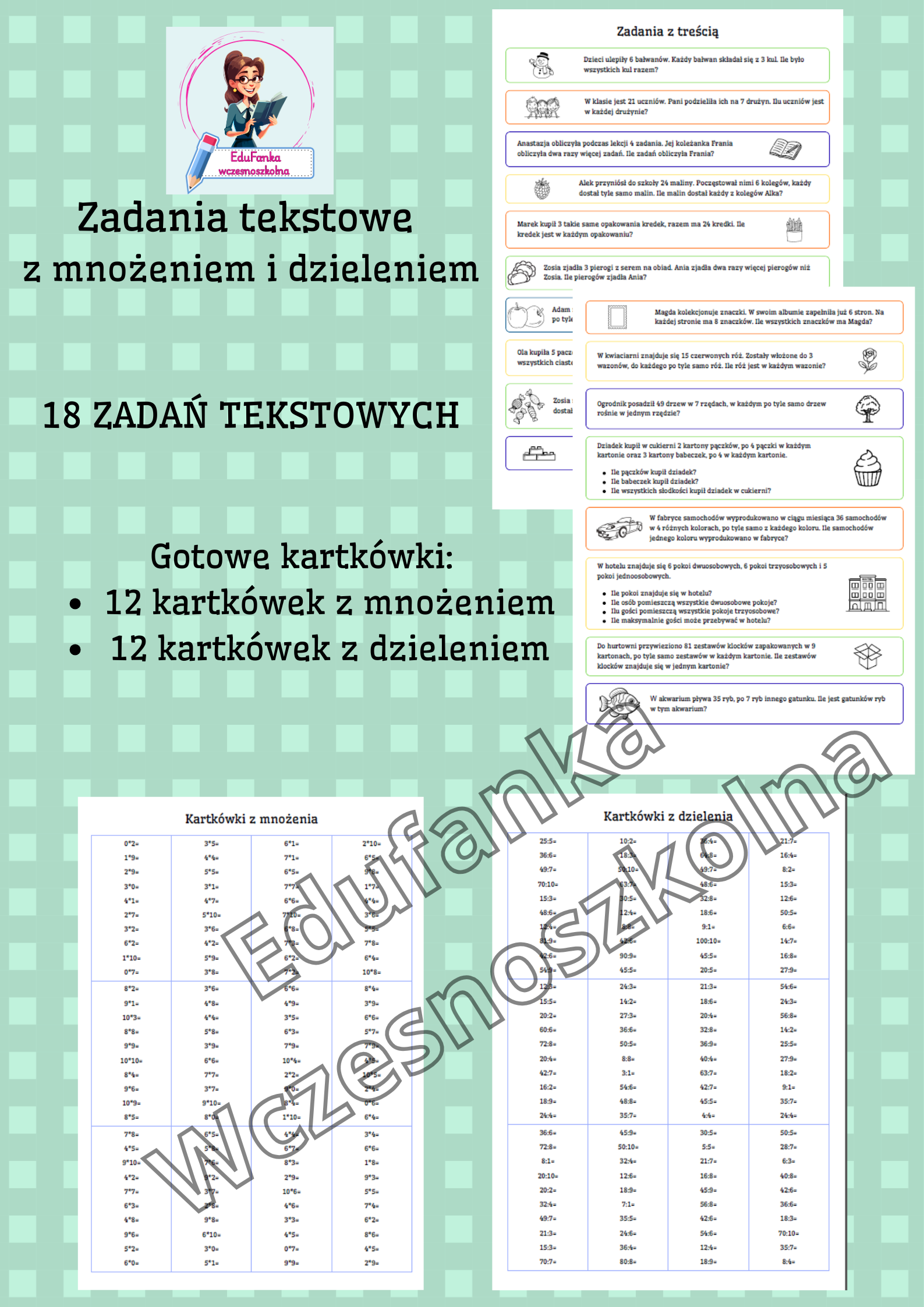 Materiały można wykorzystać do doskonalenia nauki tabliczki mnożenia i dzielenia podczas lekcji lub w domu, jako gotowe wklejki do zeszytu lub sposób na krótkie wejściówki na początku zajęć.