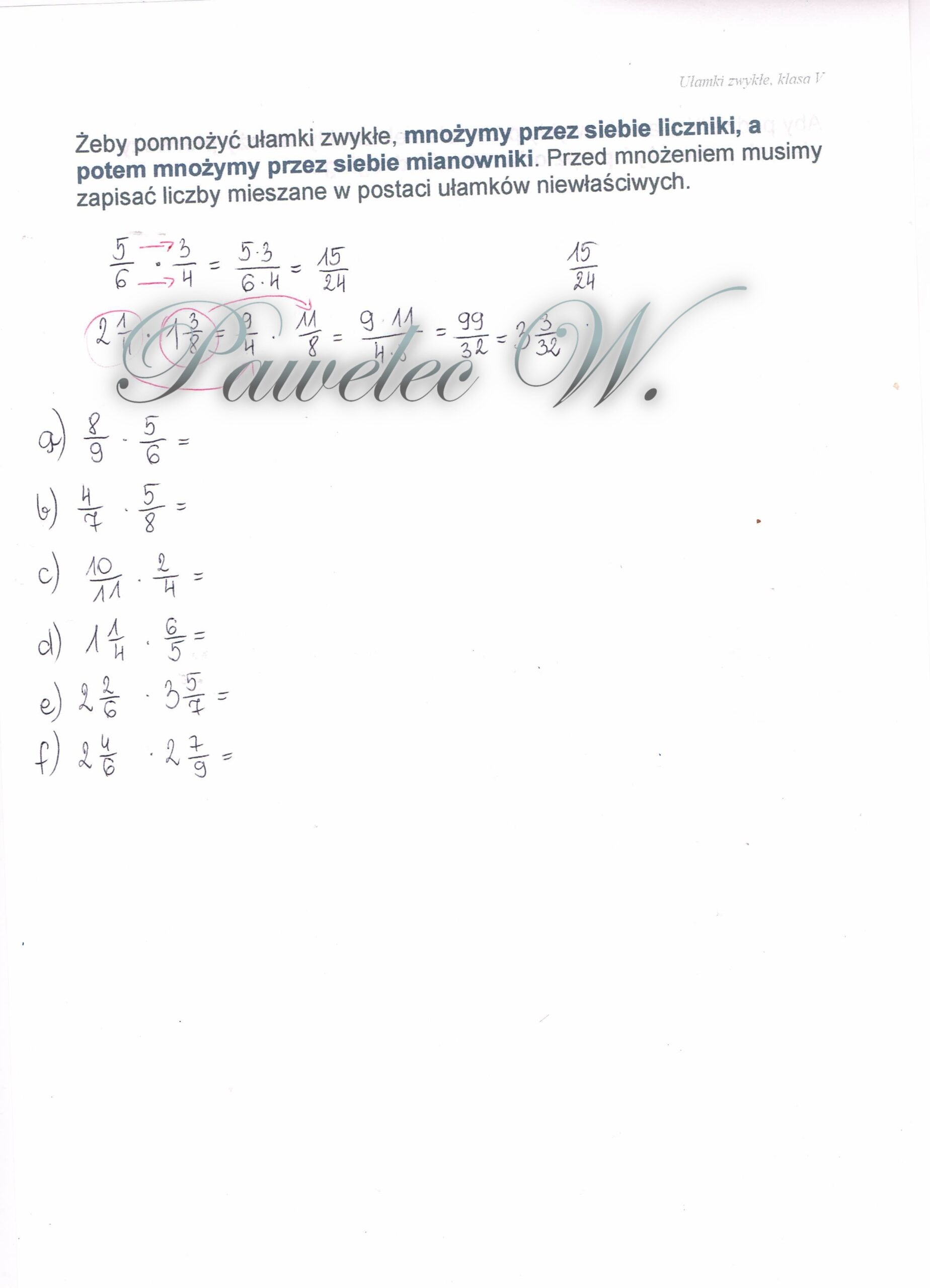 Karta pracy, która w szybki sposób pomoże zrozumieć i przećwiczyć mnożenie ułamków zwykłych.