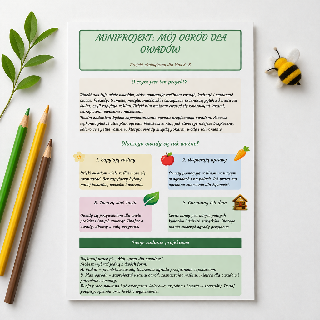 #MojOgrodDlaOwadow #ProjektEkologiczny #MaterialyDlaNauczycieli #EdukacjaEkologiczna #Owady #Zapylacze #Przyroda #PDFDoDruku #KartyPracy #DlaNauczycieli #EdukacjaWczesnoszkolna #Klasy38 #Biologia #PrzyrodaW Szkole #DzienZiemi #MaterialyEdukacyjne #NaukaPrzezZabawe #Szkoła #PlakatEdukacyjny #ProjektSzkolny