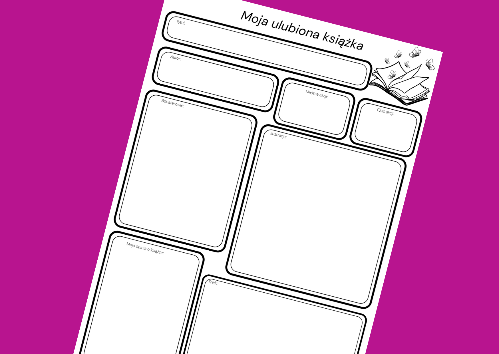1 karta pracy przydatna podczas omawiania lektur lub przygotowania przez ucznia wypowiedzi na temat ulubionej książki. Kartę można wykorzystać podczas powtórek, projektów, konkursu czytelniczego itp.