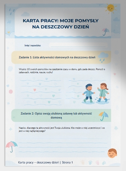 🌧️ Karta pracy – Moje pomysły na deszczowy dzień ☔
