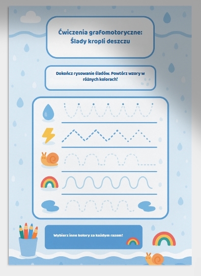 ✨ Ćwiczenia grafomotoryczne – ślady kropli deszczu