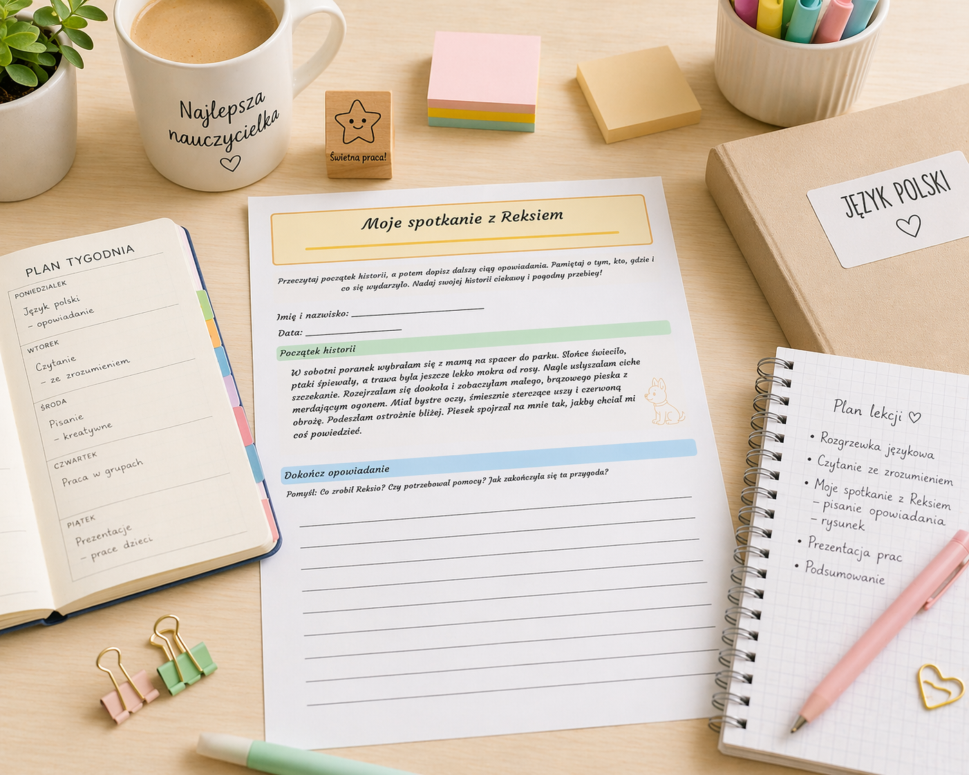 #edukacja #kartapracy #językpolski #twórczepisanie #nauczanie #nauczyciel #edukacjawczesnoszkolna #kreatywność #pisanie #Reksio 🐶✨