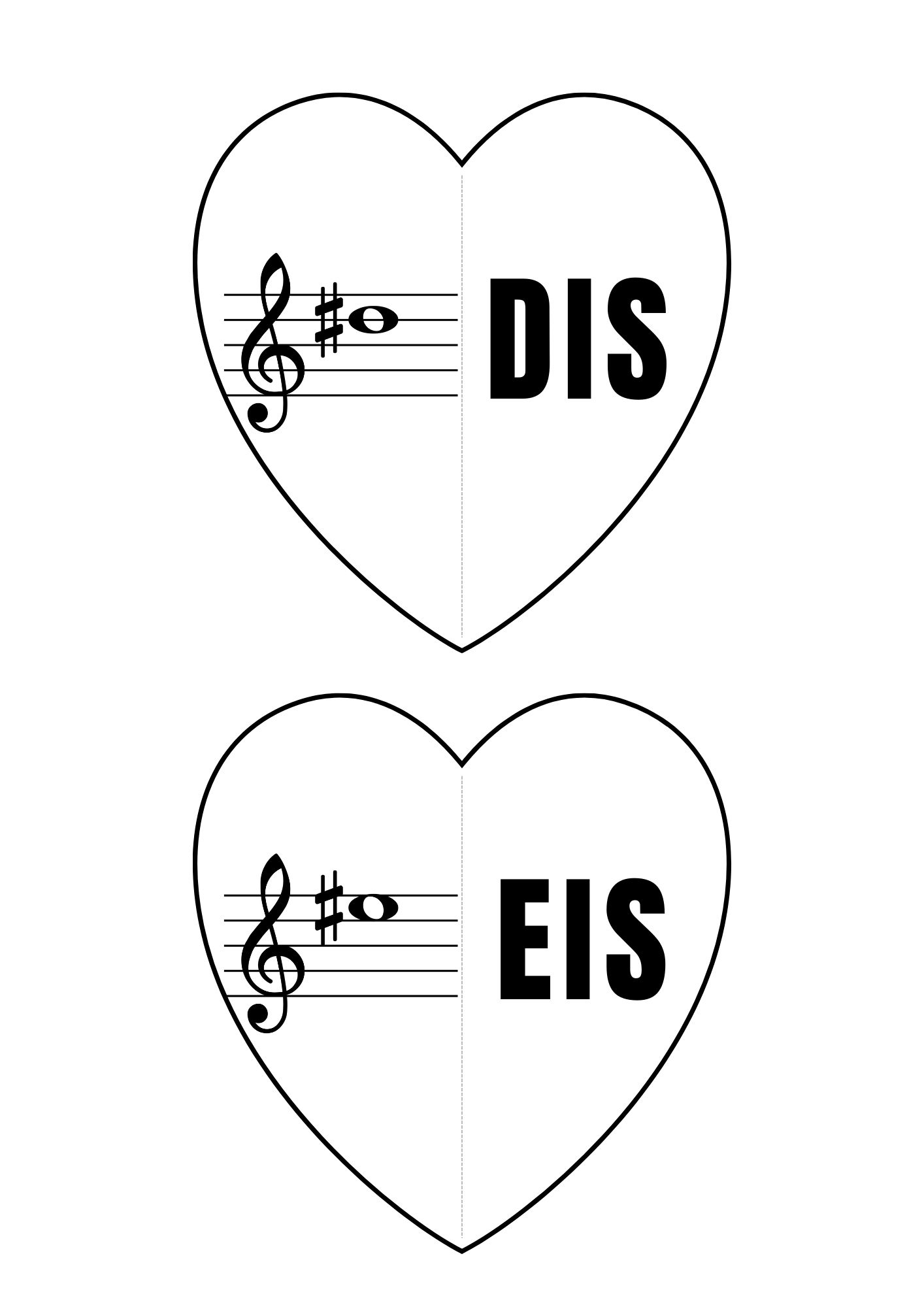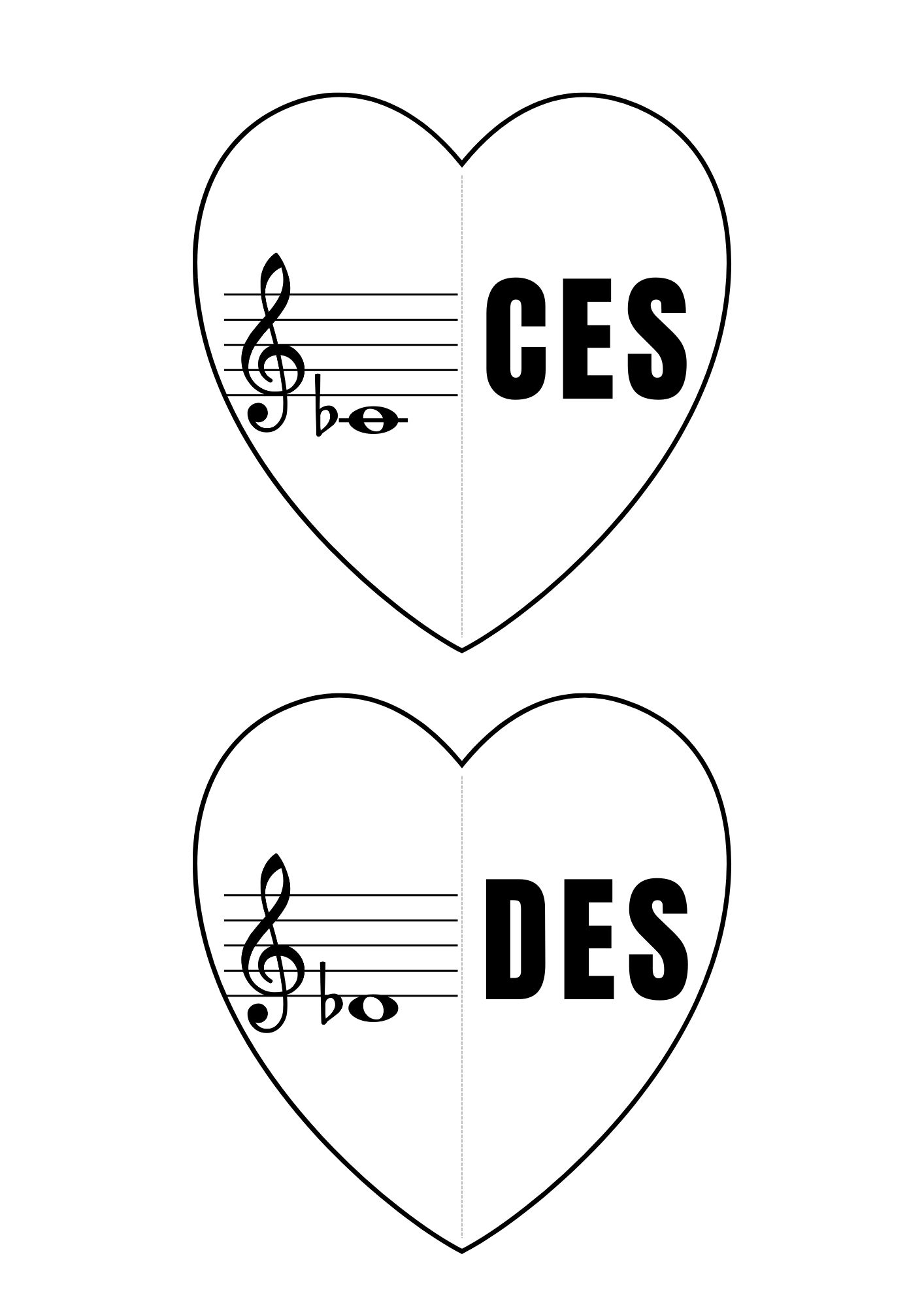 Nuty w wygodnej formie fiszek-serduszek, które należy wydrukować i wyciąć. Karty mają pośrodku przerywaną linię, ułatwiającą rozcięcie na pół, dzięki temu mogą być one stosowane na kilka sposobów: