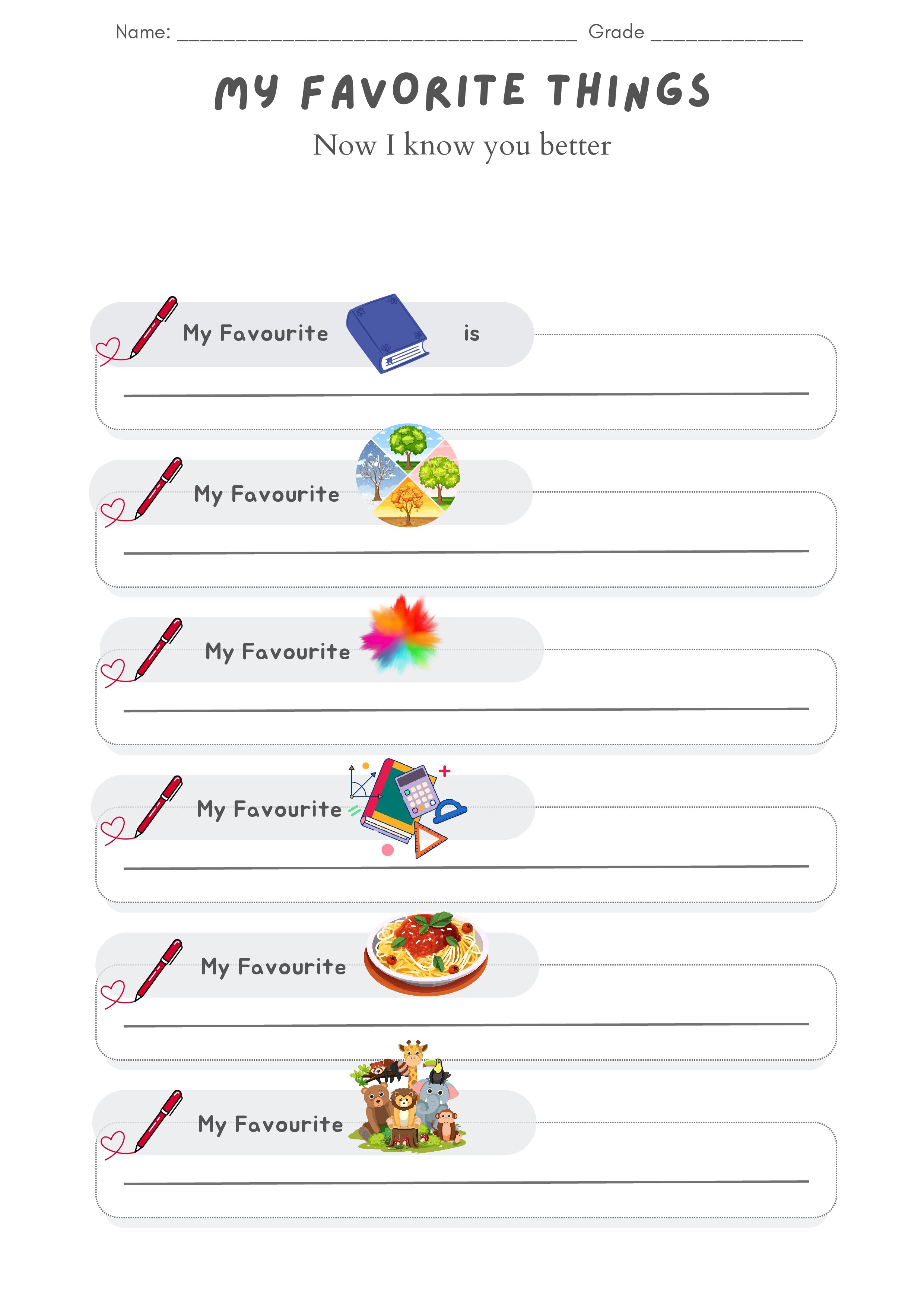 Karta pracy stworzona z myślą o wyćwiczeniu konstrukcji 'My favourite'
