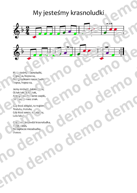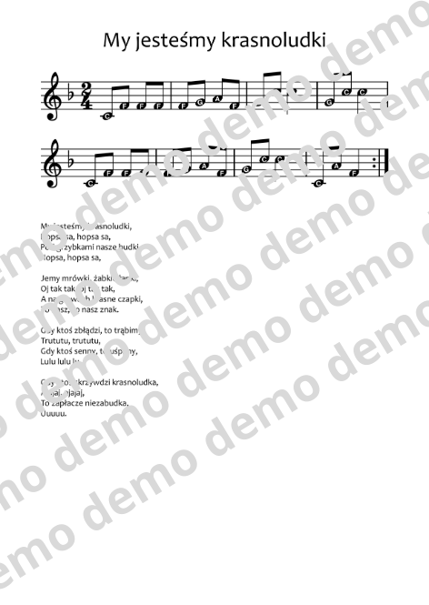 Przygotowałam nuty do lubianej przez dzieci piosenki My jesteśmy krasnoludki.