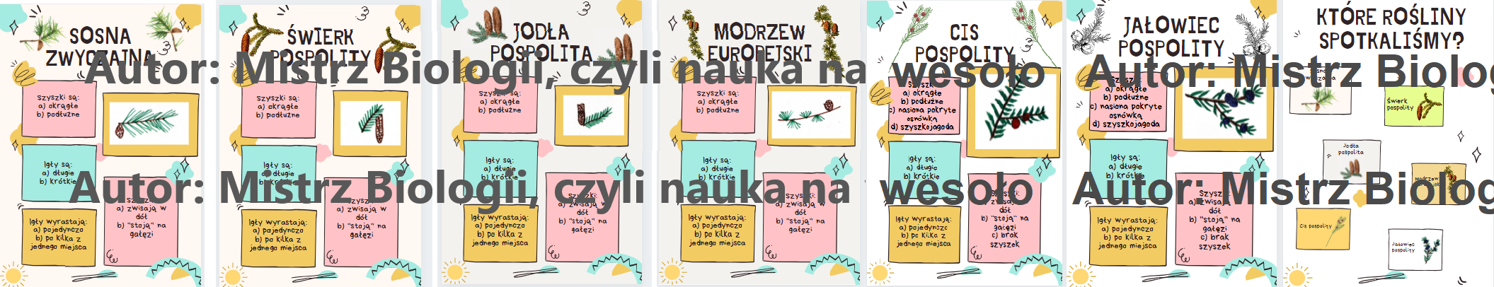 Charakterystyka najpopularniejszych roślin iglastych - uczniowie muszą zastanowić się nad tym jak wyglądają szyszki i igły tych roślin, zwracają uwagę na najistotniejsze cechy charakterystyczne, jest załączona również karta do zabrania na wycieczkę, w poszukiwaniu nagonasiennych. Dla nauczyciela również karty odpowiedzi do quizu. Do wykorzystania na każdym poziomie edukacji, również domowej!