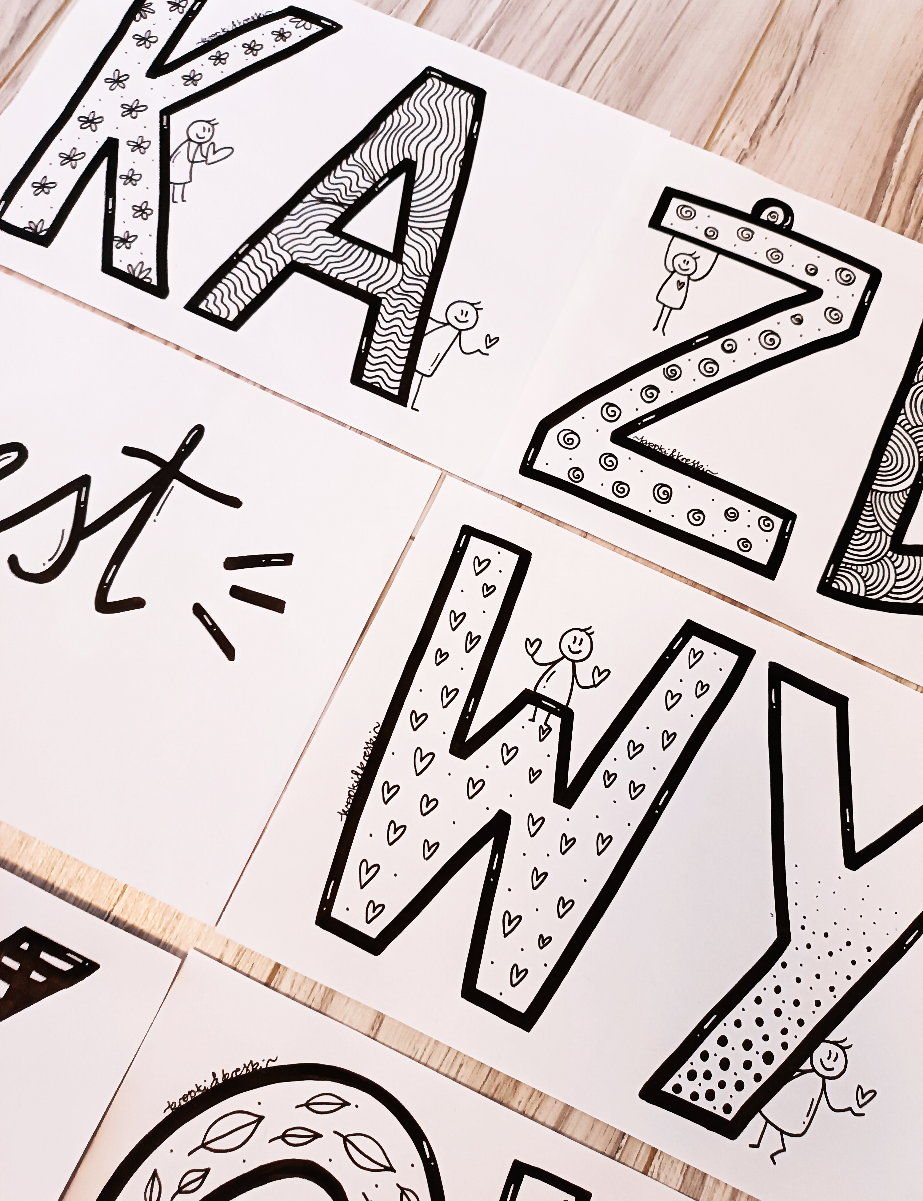 Napis "Każdy jest wyjątkowy!" składający się z fantazyjnych liter - każda w innym wzorze, aby podkreślić jej wyjątkowość :) Materiał na gazetkę (i nie tylko) do samodzielnej aranżacji. Napis świetnie sprawdzi się otoczony tematycznymi pracami uczniów. Ja wykorzystam podczas Światowego Dnia Świadomości Autyzmu :)