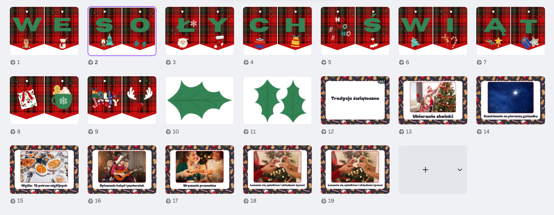 Plik zawiera napis " Wesołych świąt" oraz plansze z tradycjami świątecznymi.