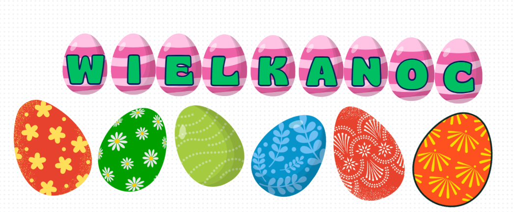 Napis WIELKANOC na pisankach - każda literka na formacie A4, kolorowe pisanki - format